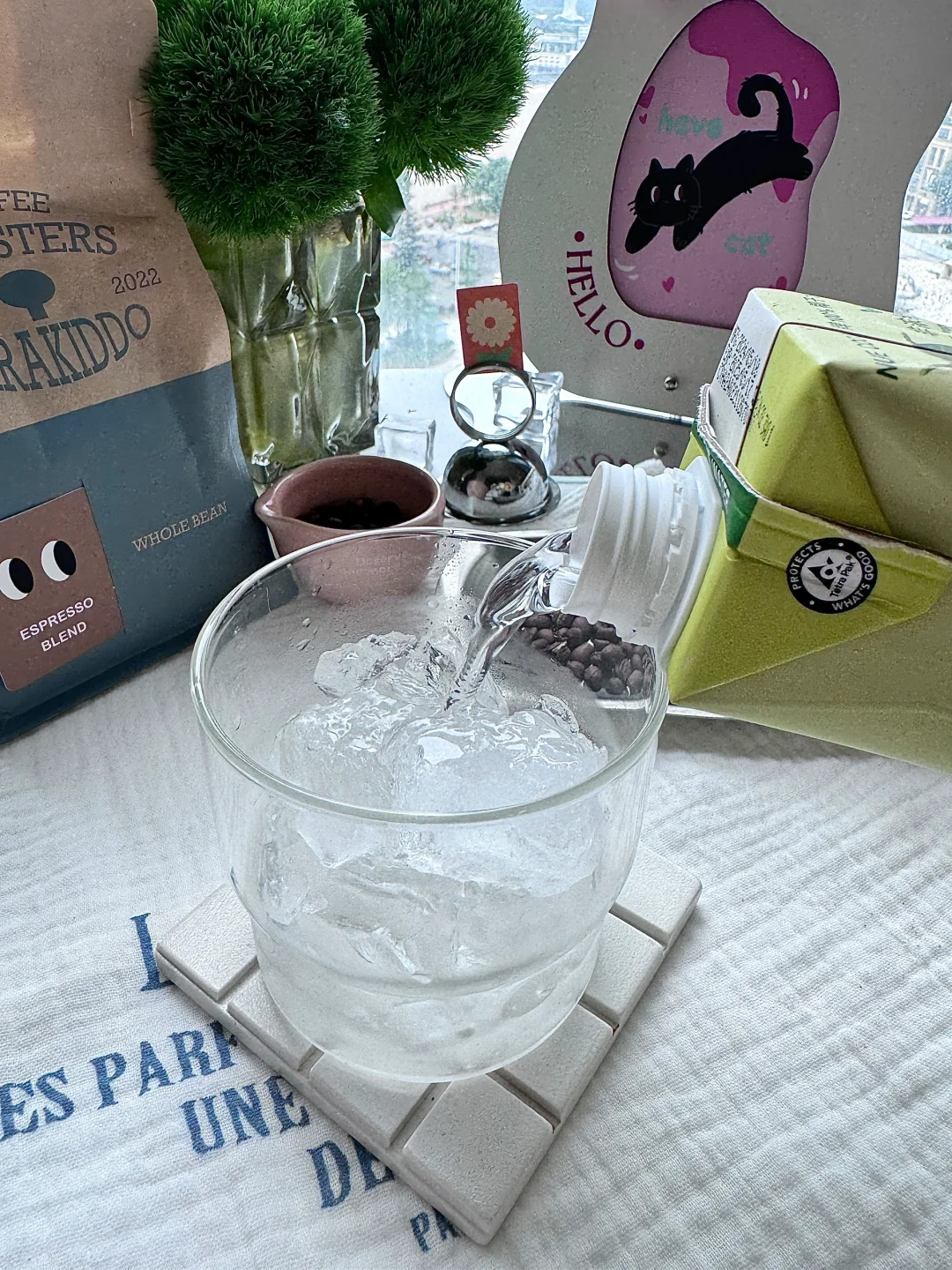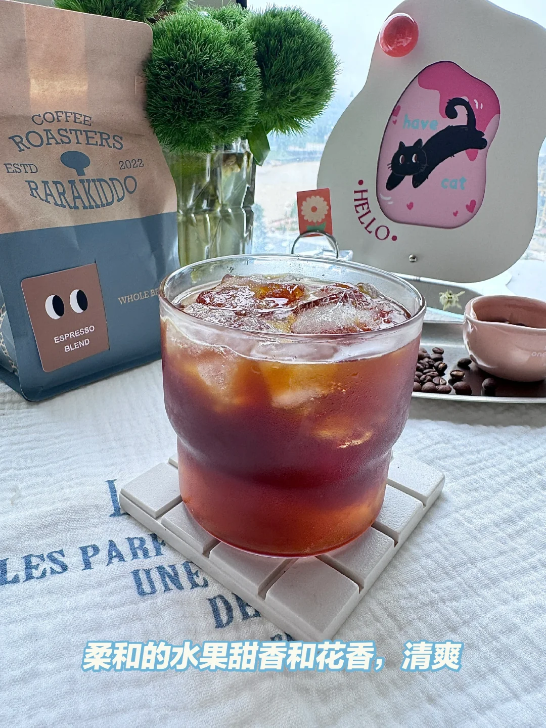 夏天是🥥水的味道 再搭配上咖啡液 低热量还好喝,分享给你们 材料:椰汁水➕冰➕浓缩咖啡 做法:杯子里冰冰加满,倒入椰子水之后,再倒入咖啡液 今天用的是绝对小孩悄悄的意式拼配,由3个埃塞豆子拼配而成,水果爆汁,玫瑰花香,香甜顺滑,人见人爱小甜豆买来养一两个星期,风味会更加显著哦[哇R]