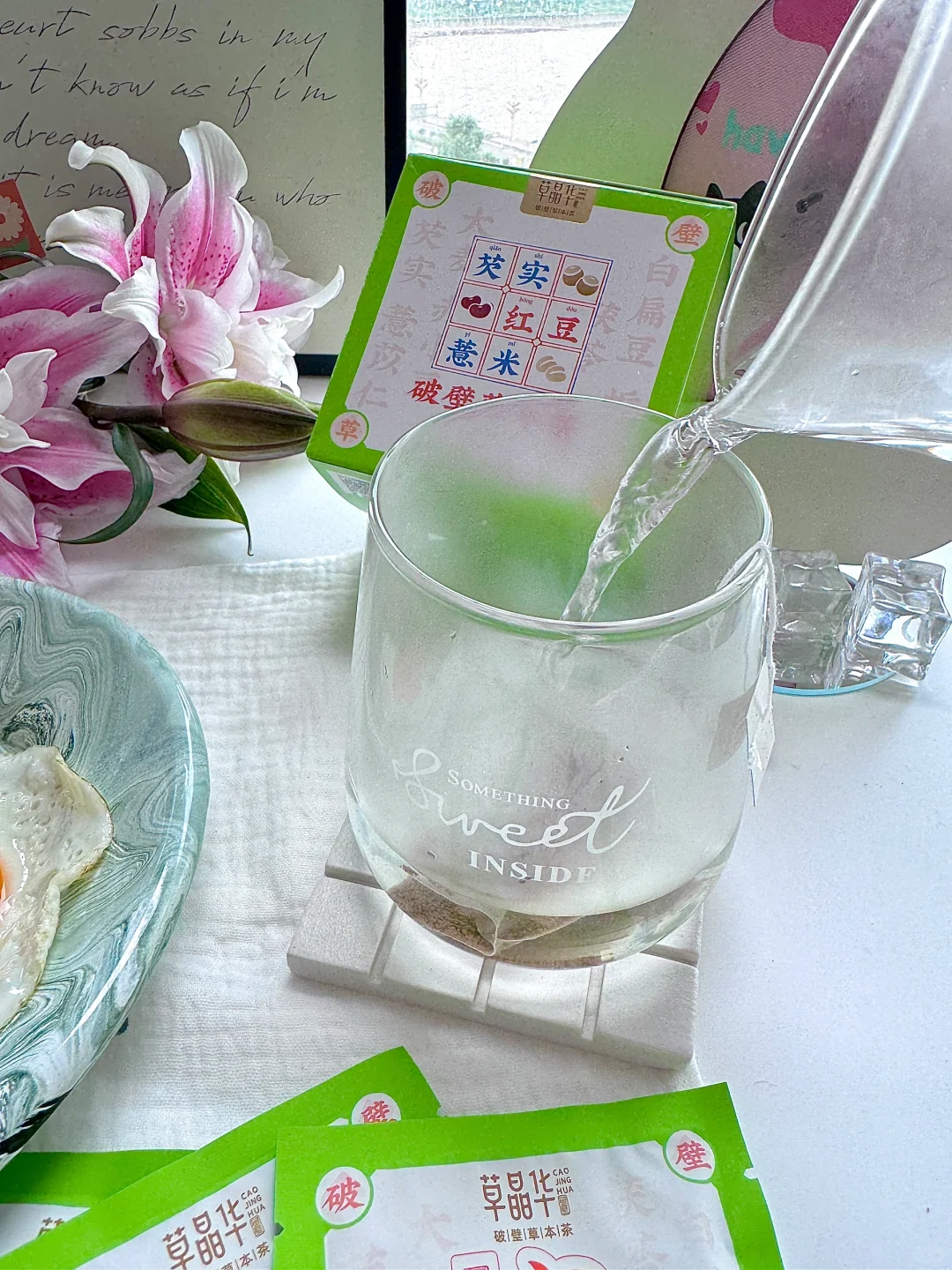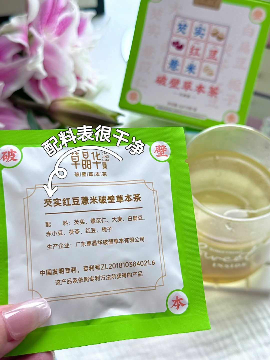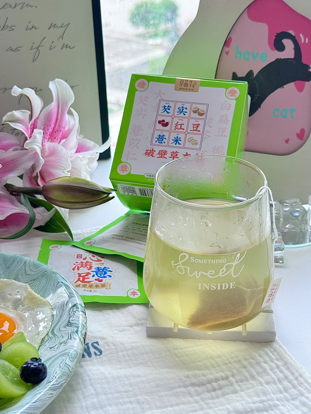 茉莉椰香碧螺春乳酪米面包|阳光玫瑰|蓝莓|鸡蛋|草本茶🍵 炎炎夏天,一杯透心凉的冰镇饮料几乎是很多人的「快乐源泉」!但其实在三伏天里,大量的冷饮会加重我们体内的shi气。来一杯热茶配上喜欢的米面包开启美好的一天 这款草晶华心满薏足破壁草本茶 很干净的配料,只有芡实茯苓红豆薏米 每一袋都是独立三角包装 冷热水均能泡,5秒get一杯香醇糯口的草本花茶