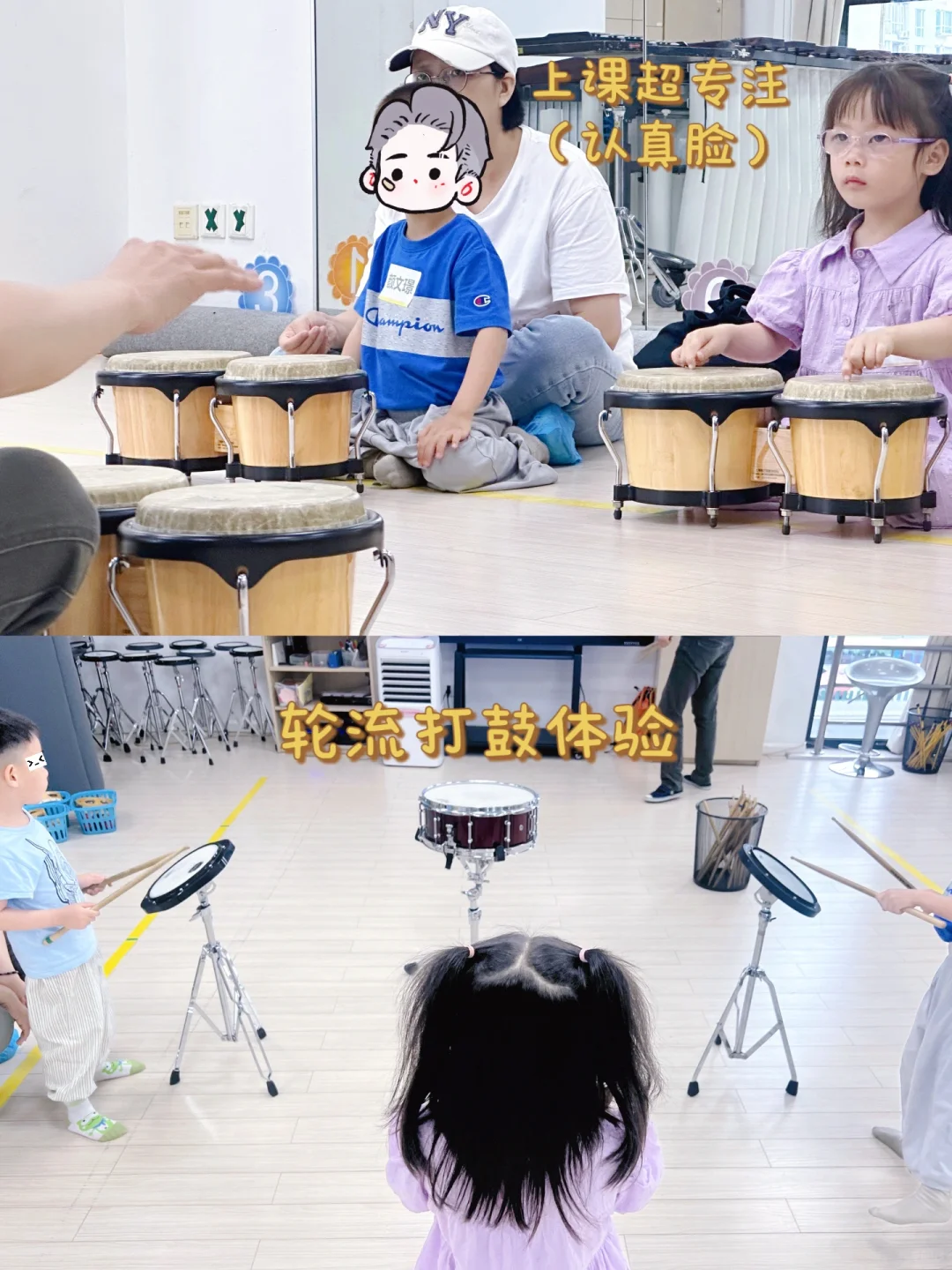 👉我们家哥哥的好朋友之前在群艺馆朱宗庆打击乐学习过一段时间,反馈还不错(主要理念比较相符)。上周末,就带妮妮去参加了一节体验课