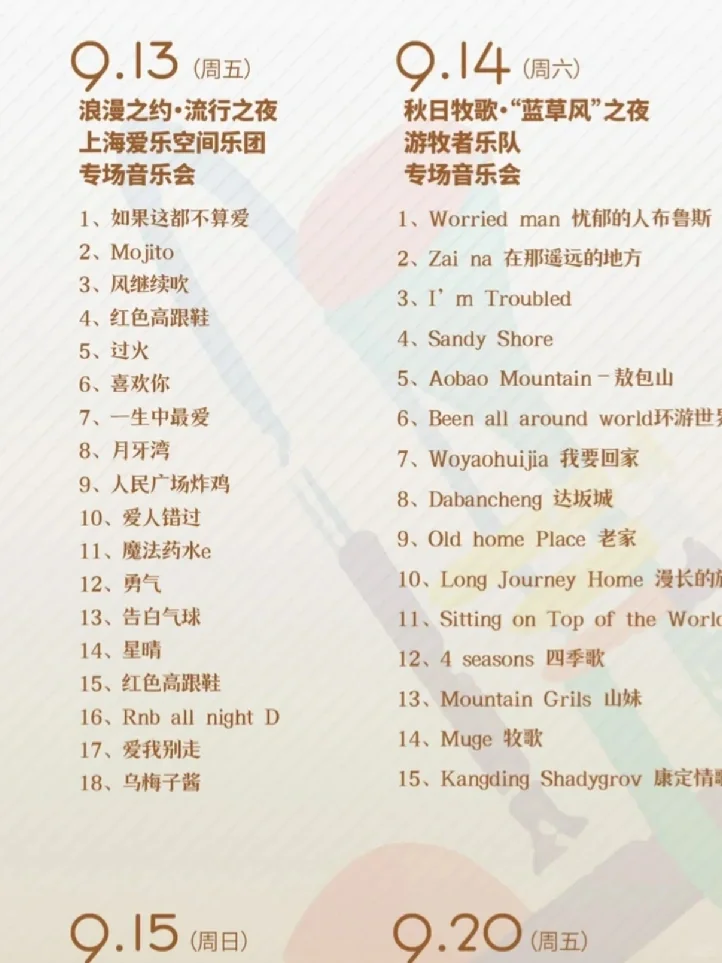 🌈 继🆓儿童剧、滑稽戏后我又来看🆓演唱会了‼️东剧场中秋美拉德.流行音乐会🎼,为期一周(9.13-9.20),每场1个半小时 🔹上海爱乐空间乐团,现场伴奏、演唱🎙️ 🔹户外场氛围💯,还送荧光棒,爱了 🔹内场座仅供🐟约过的,没约的🉑️站在后排听 🔹今日歌单真的绝了 1️⃣如果这都不算爱 2️⃣MoJito 3️⃣红色高跟鞋 4️⃣喜欢你 5️⃣过火 6️⃣告白气球 7️⃣勇气 8️⃣星晴 9️⃣爱我别走 ………. 1️⃣8️⃣一生所爱