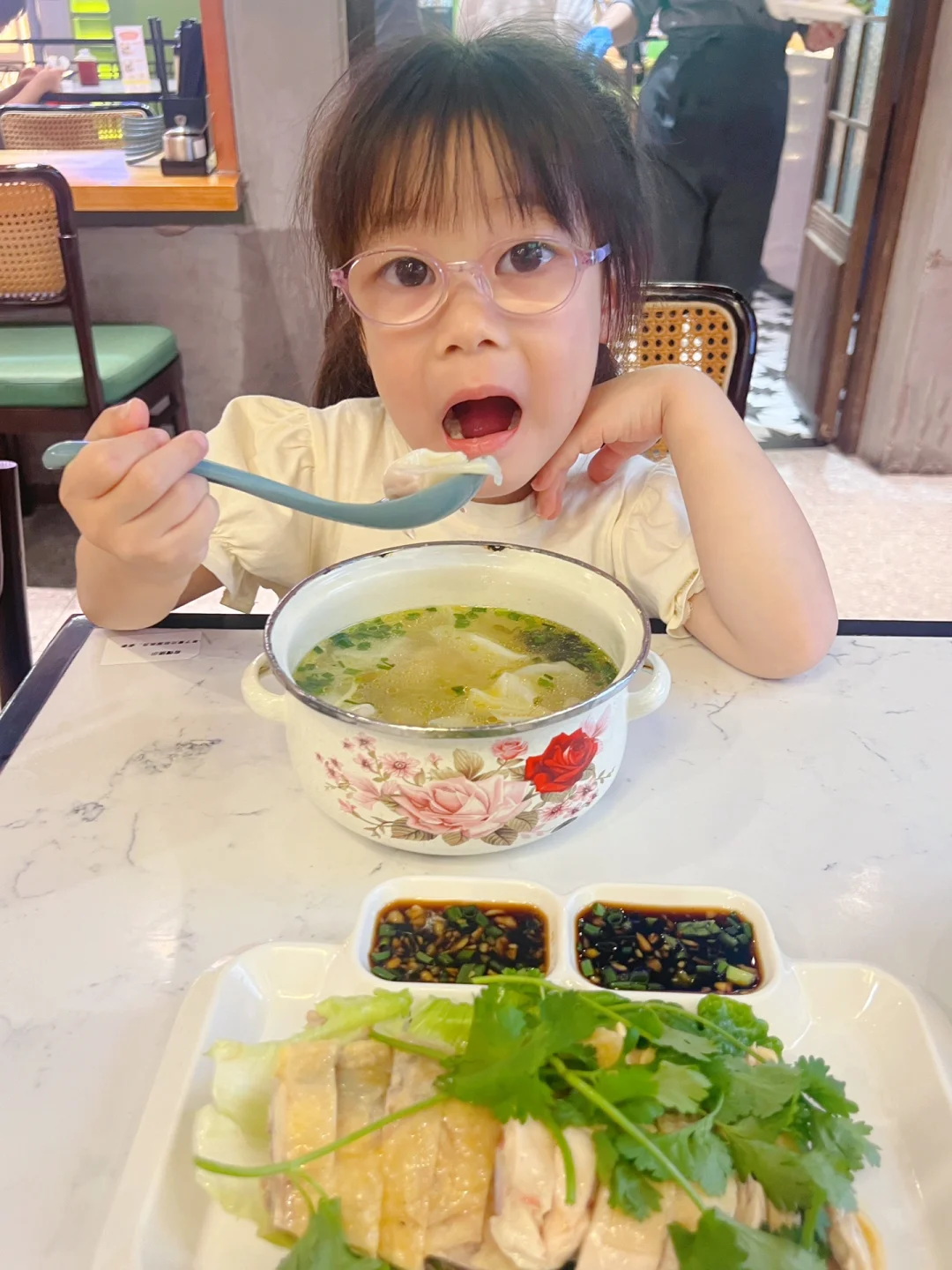 📍小绍兴,店内都是上海阿姨很亲切,带点血丝的白斩鸡配上沙姜酱油,那口感真的绝了。老式搪瓷砂锅的鸡汤小馄饨,妮妮随随便便都能吃上一碗