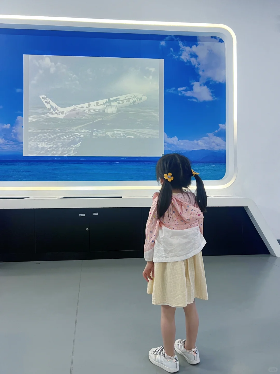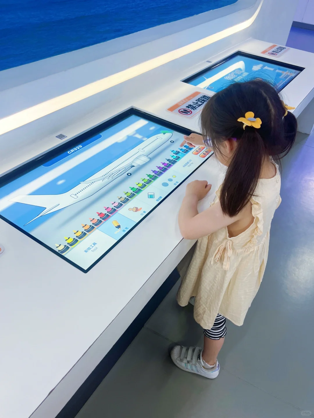 👉1F“走进中国大飞机”,介绍了中国自制飞机的历程。🈶️一个儿童主题画展,可以激励自己小朋友。隔壁互动区🈶️给飞机✈️涂鸦的电子游戏,彩绘完成后还能模拟升空,在大屏前观看自己设计的飞机升空,成就感满🈵️,妮妮在这玩了好久。还有许多问答机,适合大些的小朋友参与