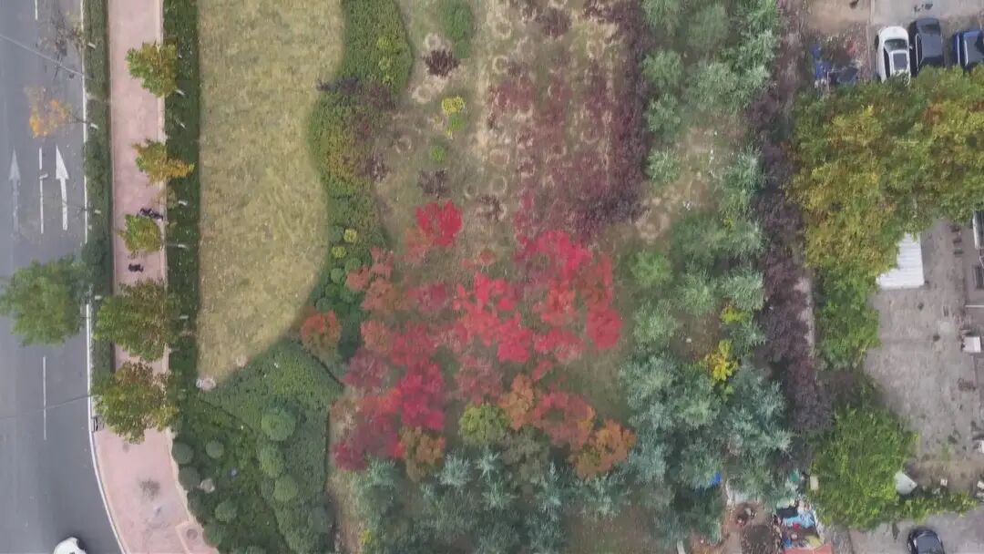 崂山区城市管理局园林绿化管理科工作人员 龚利军:劲松五路口带公园在改造提升后,在功能空间上分成南北两区,北区以动为主,有篮球场健身设施等;南区以静为主,有休憩廊架座椅等能满足市民对不同室外活动的需求。