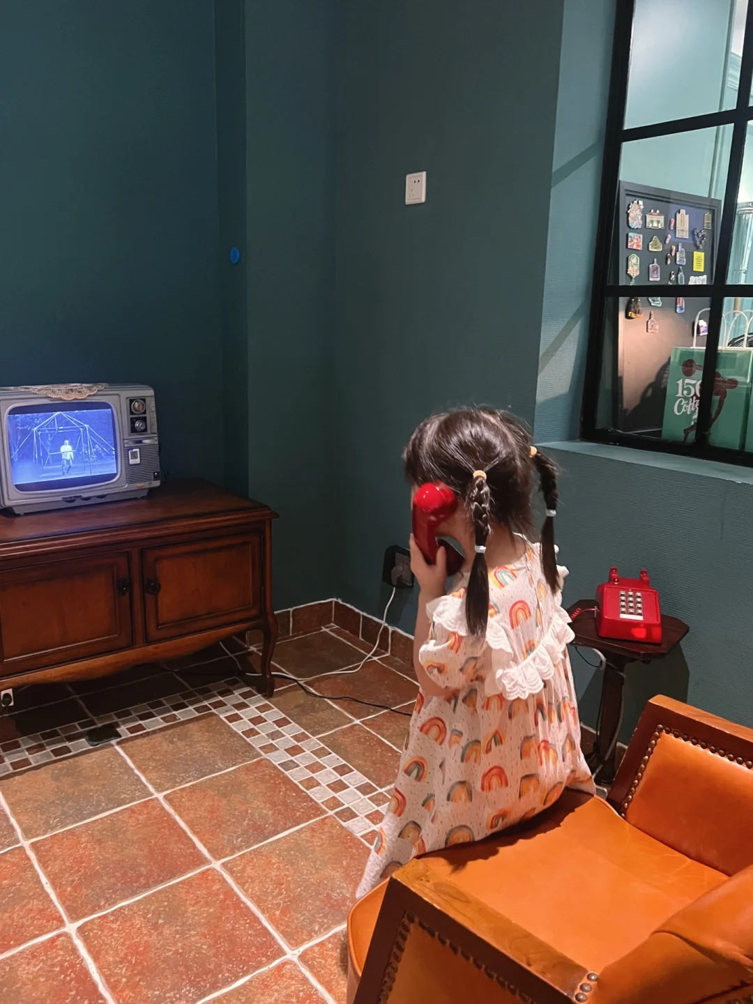 🔹1F历史之舟,上海体育发展历史介绍。陈列了早期的迷你奖杯🏆,见证体育器材的更新换代,有2台复古电视机,电话机☎️拨号可以互动,妮妮很喜欢