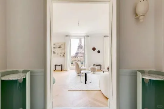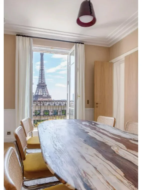 还有比这里更好躺观铁塔的地方吗?绝对比任何酒店更爽!享受无与伦比的视野与艺术氛围,让您在奢华公寓中一边观赏标志性景观,一边沉浸于精心搭配的艺术品中,生活质感瞬间升级!207m2