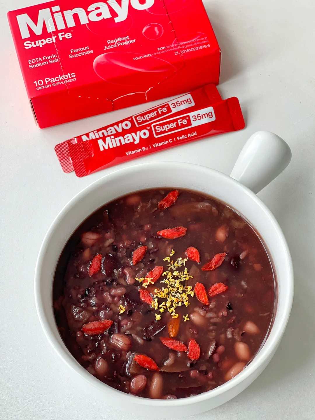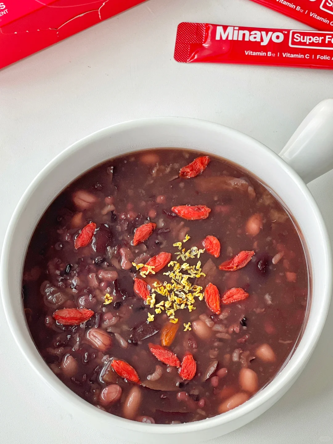 今天分享一款有亿点点厉害的早餐粥做法~五红粥! 都是超市常见食材,搭配一起搭配一起口感香甜软糯,养气又补血,立秋之后女生们真的要多喝!面膜扔了腮红钱也省了! 像我怀孕到生完双胞胎,贫❄问题会比一般妈妈们严重,这个粥每周会安排几次,像遇到姨妈期,或者蹲一会站起来就头晕,身体铁需求告急,我就会选择更高效的补铁方式。 每天吃一条Minayo美那有超级铁,小小一包哐哐炫进35mg有机铁,相当于4斤牛肉、304颗红枣,确实比食补更高效;配方是新型有机铁+活性叶酸+维生素B12+维生素C,这个成分表真的很优秀,也不想其他液剂/片剂那么麻烦,直接干吃就可以。 坚持吃一个月,你会发现自己的无论是身体力量感还是外部呈现的状态都在慢慢改变;讲真,对素颜出门这件事也没这么抗拒了,建议姐妹们把奶茶都换成它~ - 五红粥做法 - 🔹食材: 红豆15克、糯米20克、大红枣4颗(小的可以7~8颗)、黑米20克、红皮花生15克、枸杞适量、红糖适量。 🔹制作方法: 除红糖外其他食材放电饭煲加适量水一键煮粥模式,煮好后加红糖拌匀即可。(喜欢喝粘稠的建议水稍微少一点)也可以所有食材放破壁机一键米糊模式。