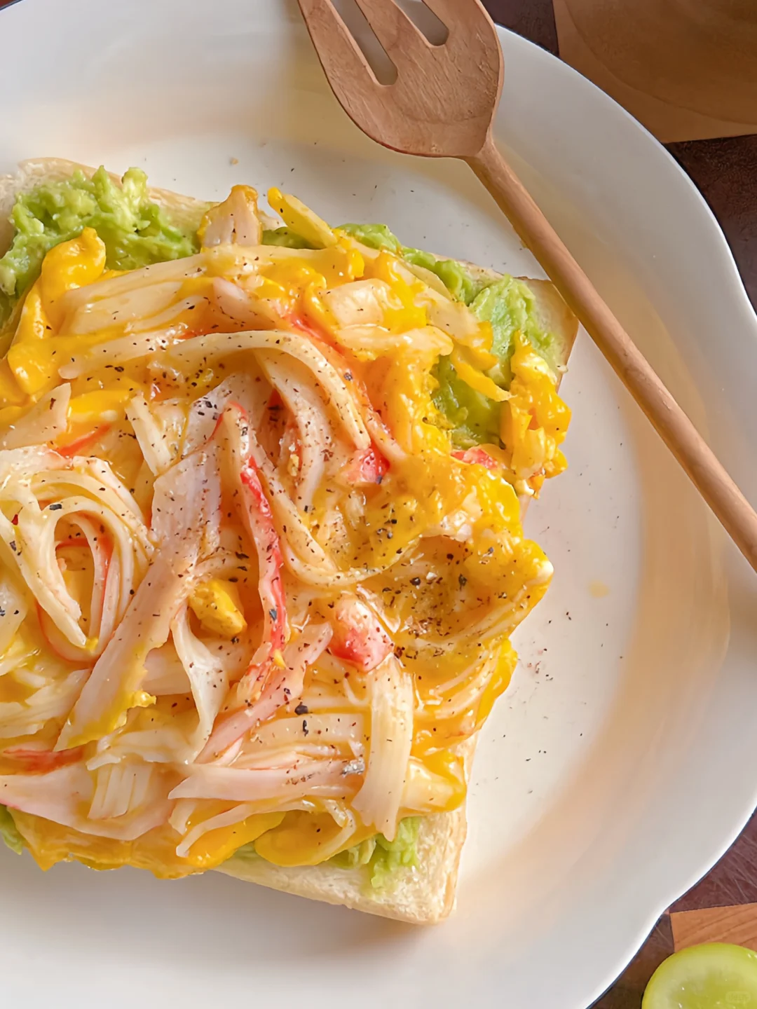 最近买的牛油果🥑太🉑啦 个个和我的手掌差不多大 果肉细腻丝滑无黑丝 今天就用它做个牛油果🥑蟹柳滑蛋三明治 简单的放了一点海盐黑胡椒调味 简单快手,健康营养! 让人一口沦陷的感觉谁懂啊?