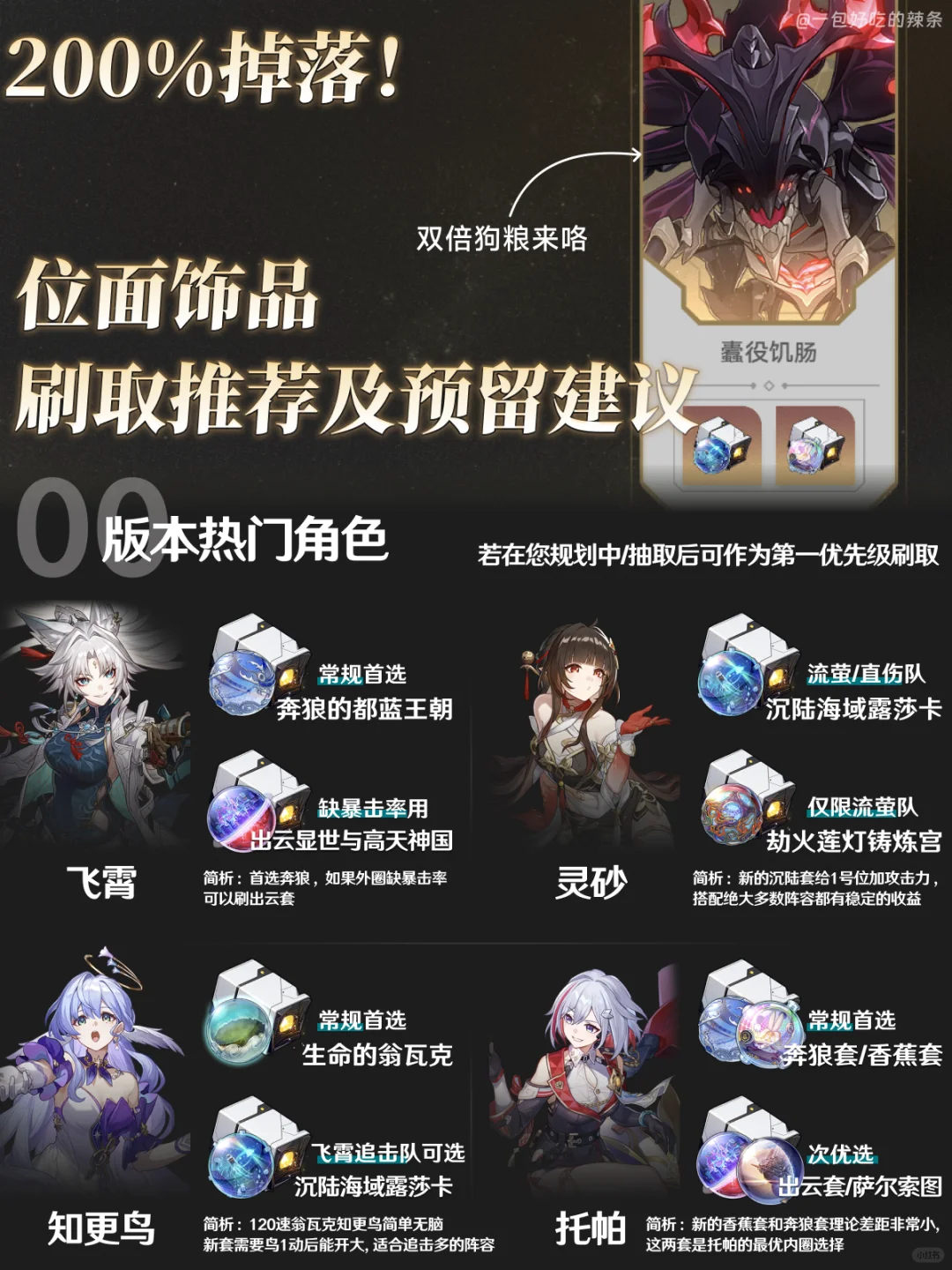大家好,这里是一包好吃的辣条 这版本双倍内圈的开启时间从以前的周三调整到了周一 和差分宇宙刷新同步,更舒服合理 明天(9.23)就开双倍咯~ ————————————— 如有遗漏/错误欢迎指出,共同进步~ —————————————