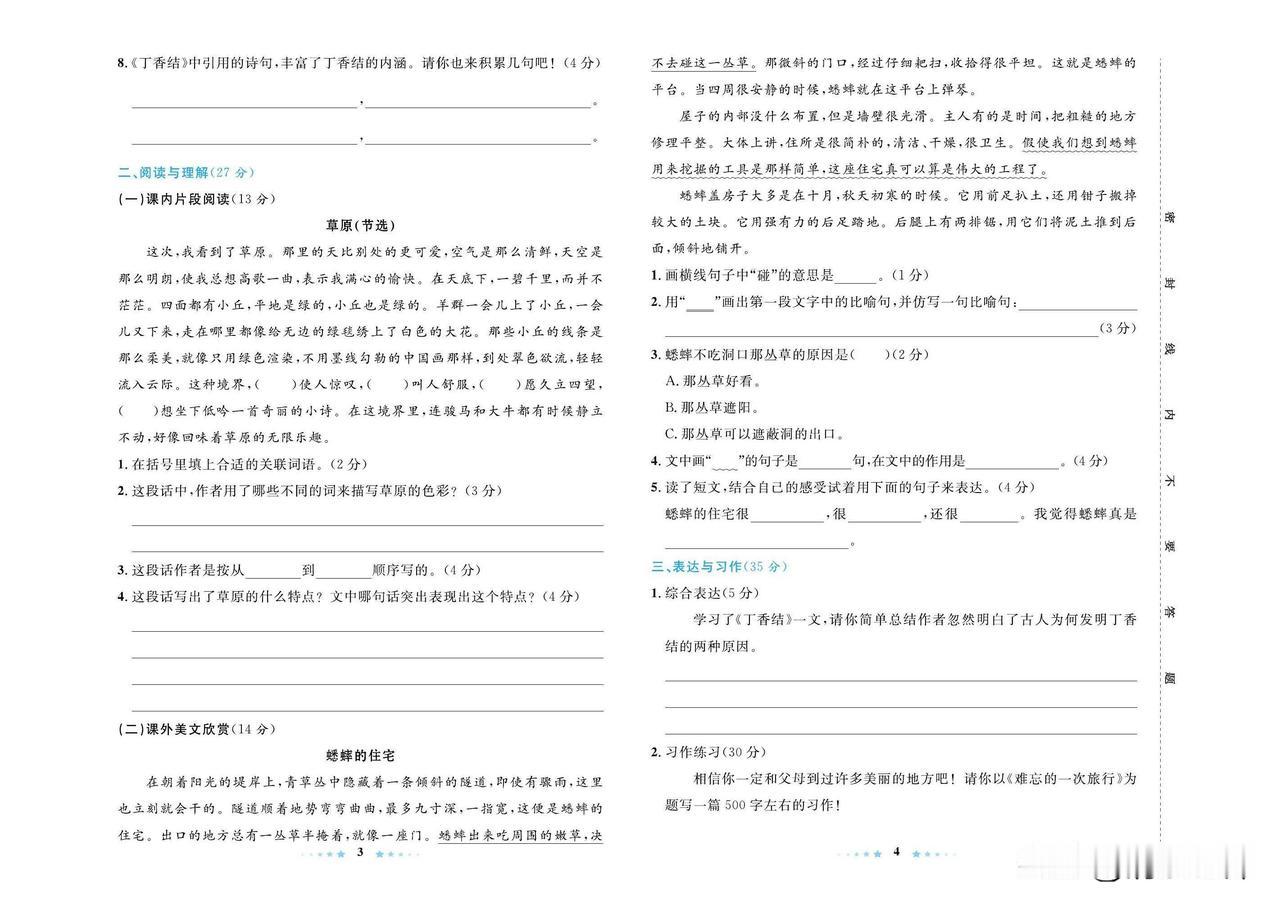 2024秋统编版语文六年级上册第一单元达标检测卷