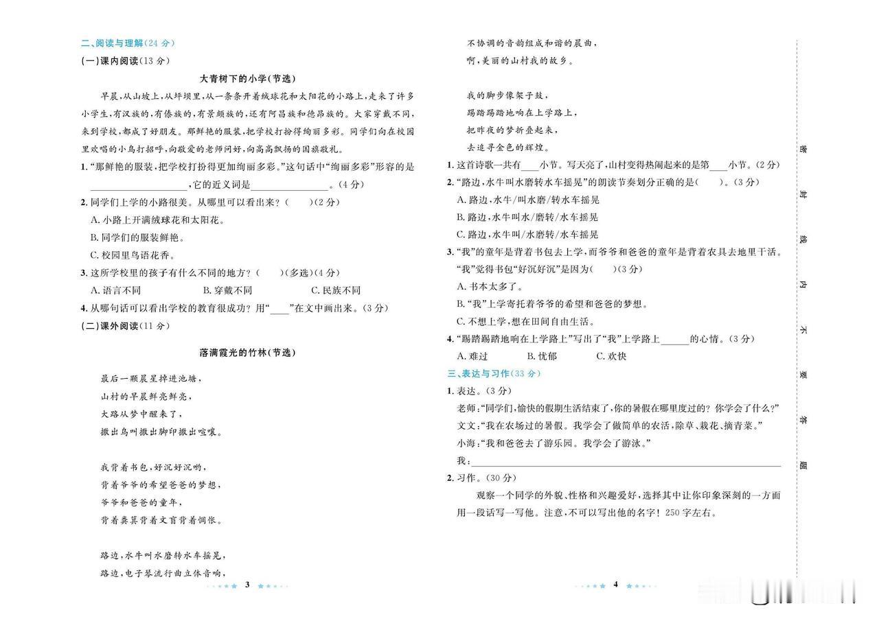 2024秋统编版语文三年级上册第一单元达标检测卷