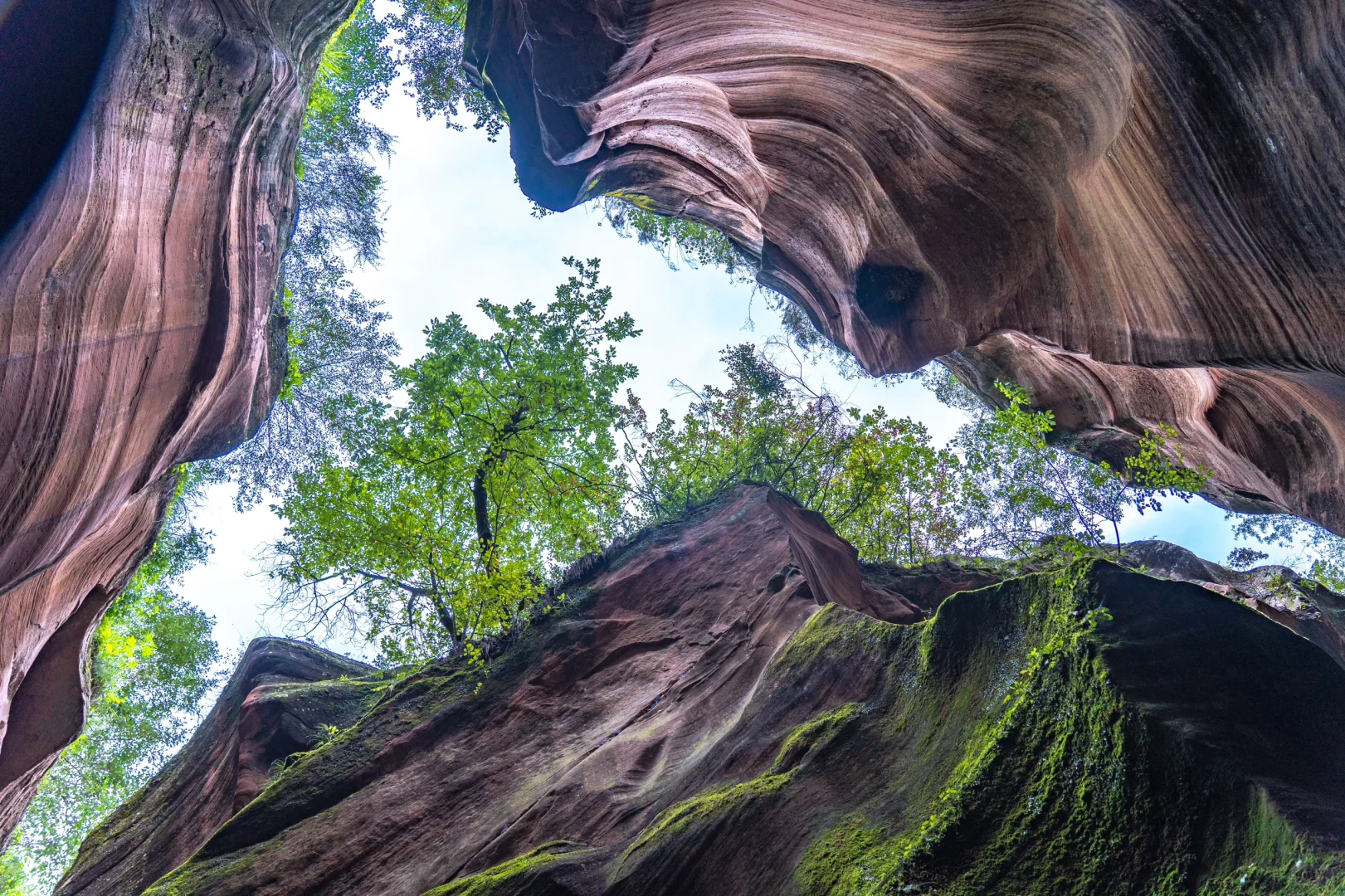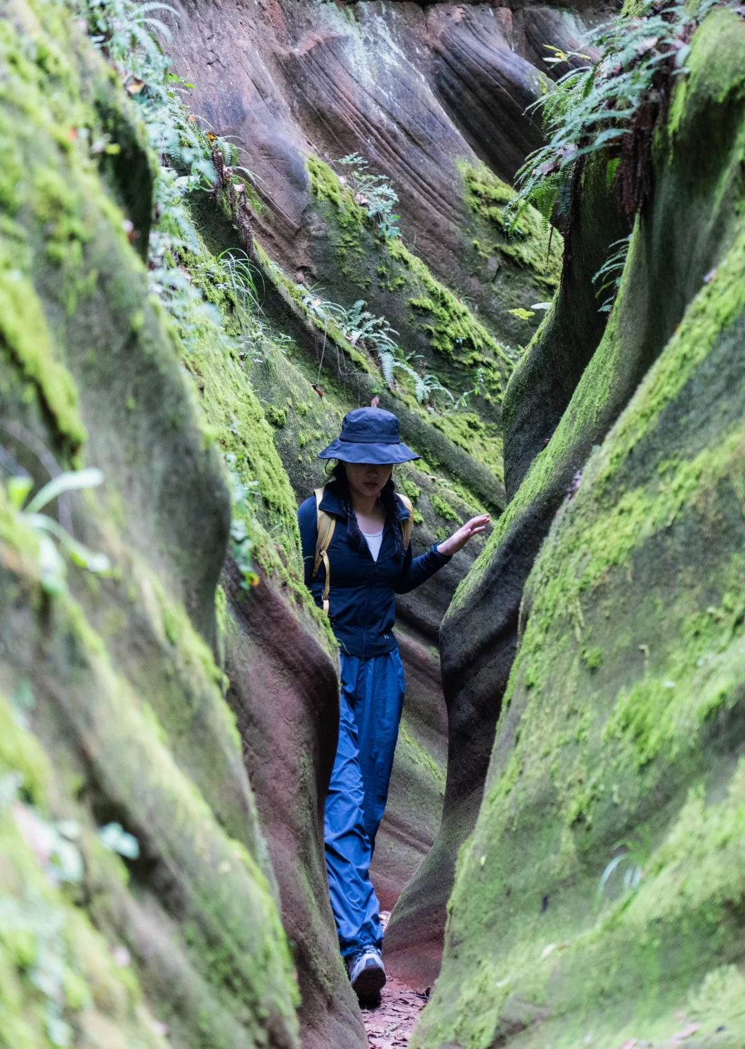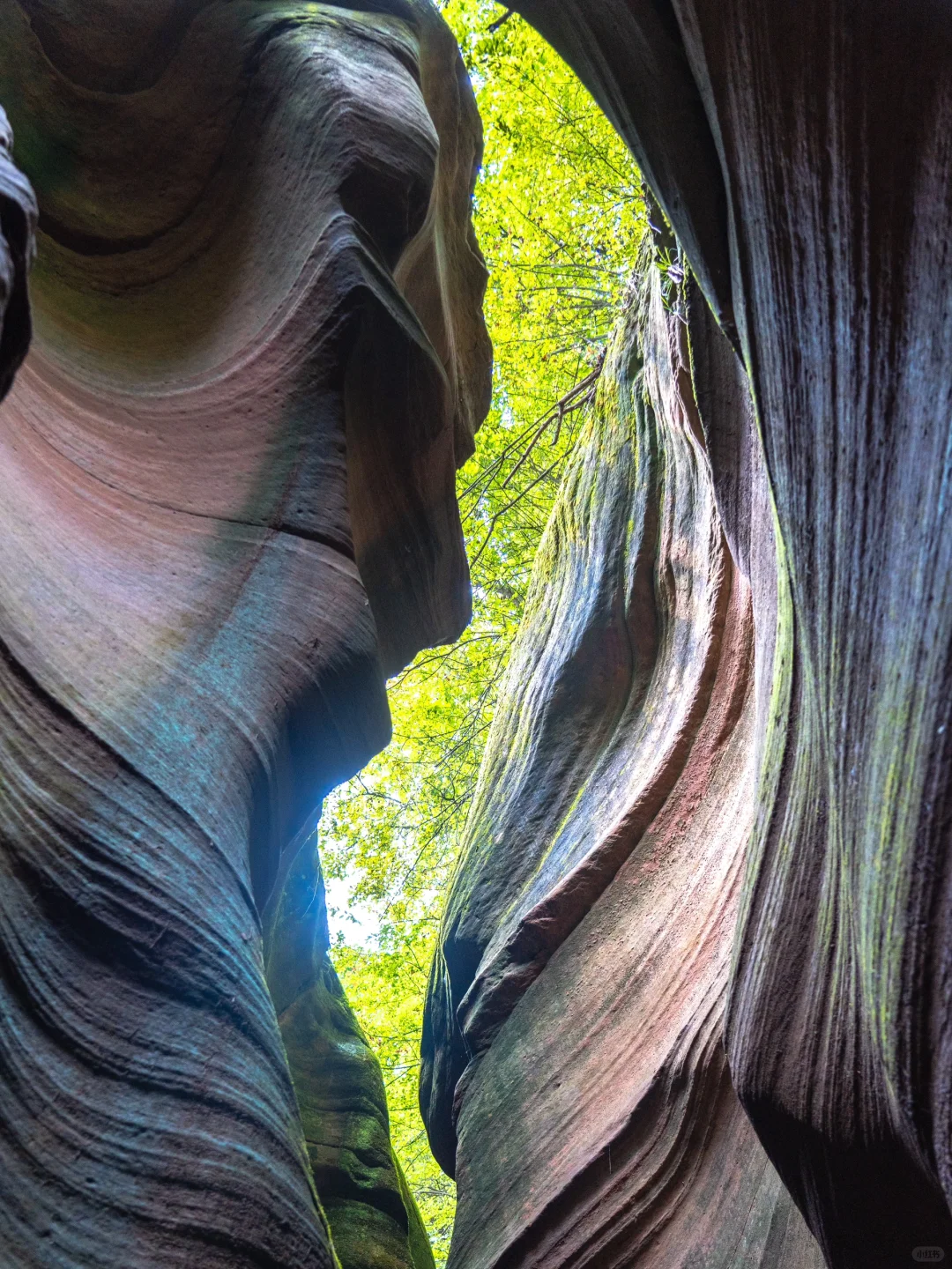 甘泉大峡谷具有“幽、活、神”等特质,峡谷口外植被茂密,崖壁两侧呈现出明显的波浪状特征,红色的石头、绿色的苔藓、黑色的腐殖质流痕、白色和黄色的泥膜,加上不同时间不同季节阳光照射的色彩变幻,构成了美伦美奂的梦幻世界是地球上最接近梦境的地方。