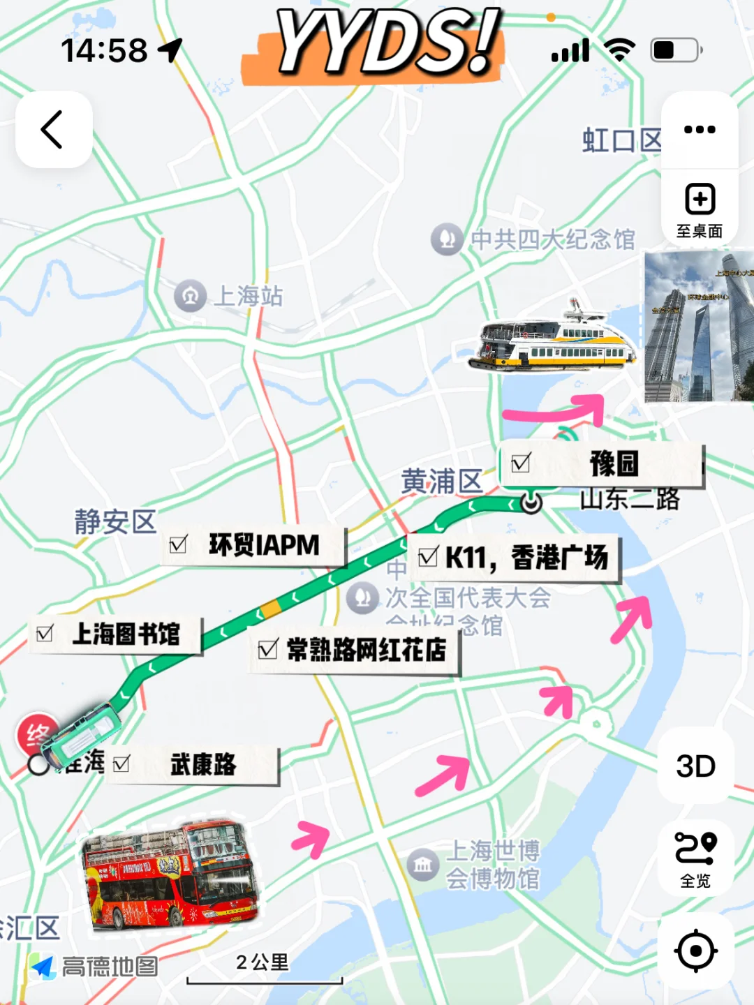 🔹新开河路中山东二路:豫园,步行500m就是金陵东路渡口🚢