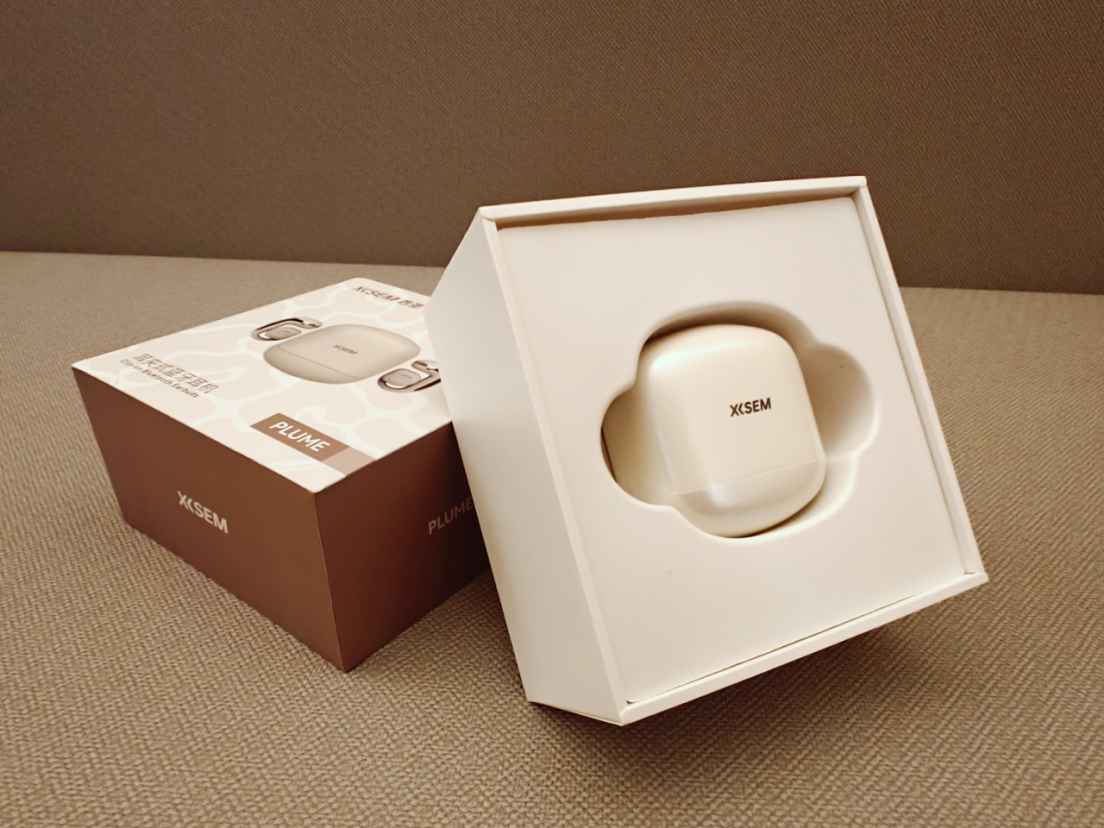 西圣Plume耳机的包装设计简约大方,曜石黑、珍珠白两种经典配色可供选择,我选择了更简洁干净的珍珠白。