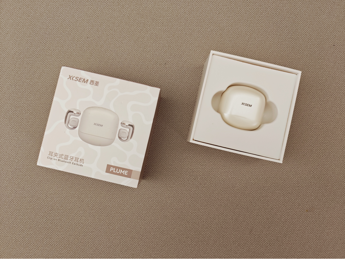 打开包装,首先映入眼帘的是小巧精致的充电舱。这个充电舱比预期中要小得多,几乎只有掌心大小,完全颠覆了我对耳夹式耳机充电舱的认知。