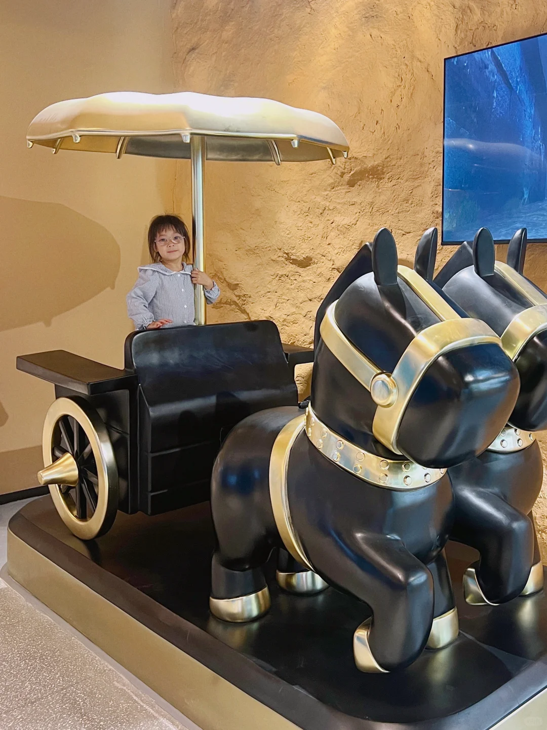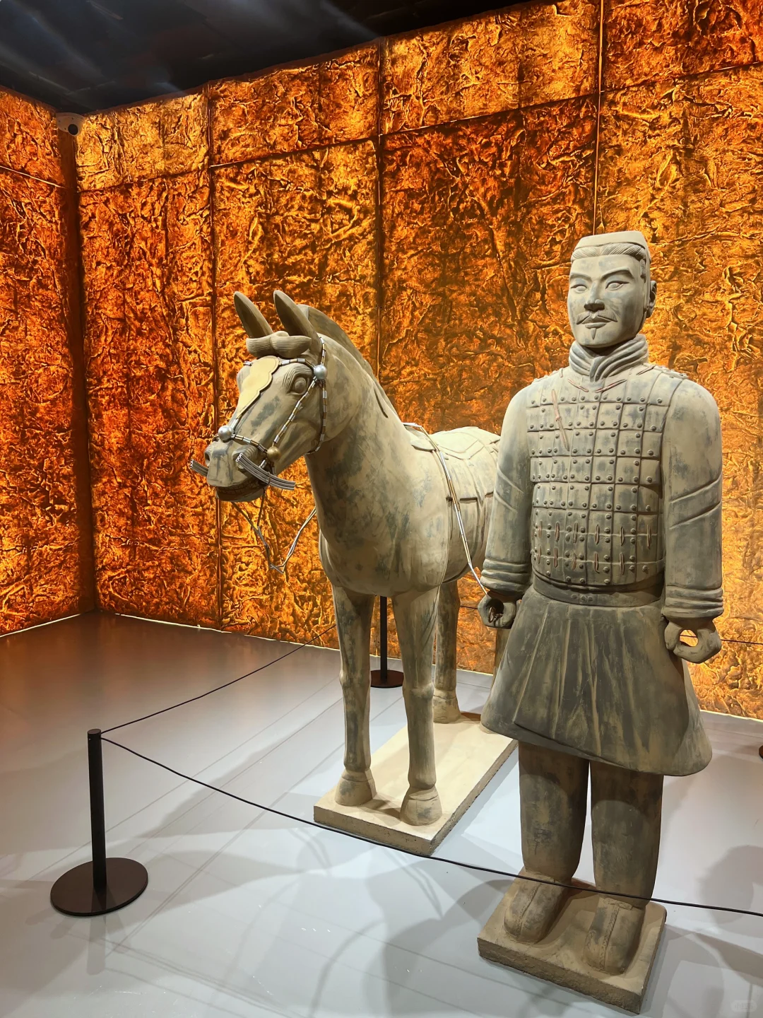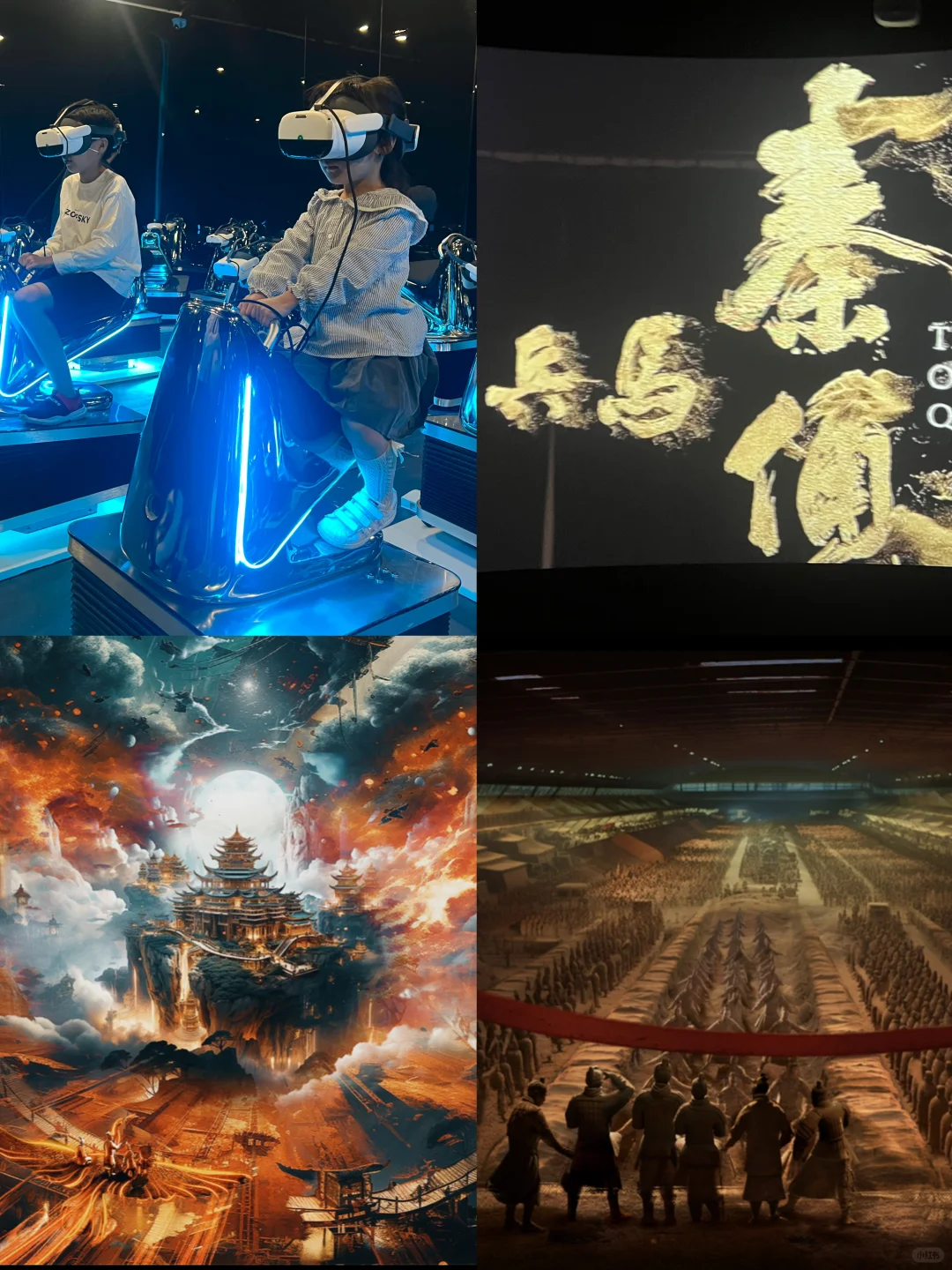 科技感满满,也是本展蕞有趣的,到了这一环节才知道为什么要叫【奇幻夜】。骑上小马,带上VR眼镜,穿越大秦王朝,从西安兵马俑的1号坑开始,穿越到2000多年秦朝时期,画面非常精致,连星空都能看到,并且还会配合吹风、喷水、颠簸,体感更逼真。妮妮看完吵着还要再看一次,真的太有趣了‼️