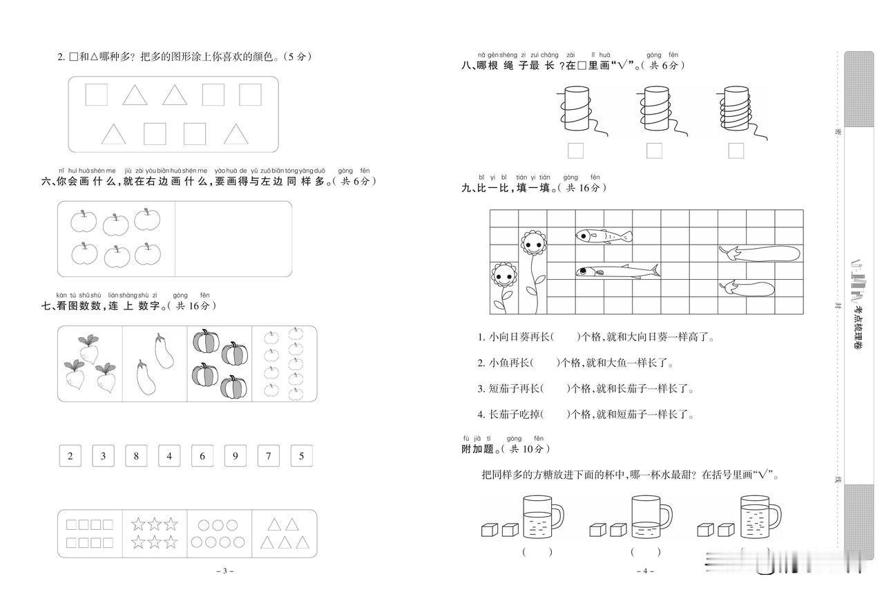 人教版数学一年级上册第一单元达标检测卷