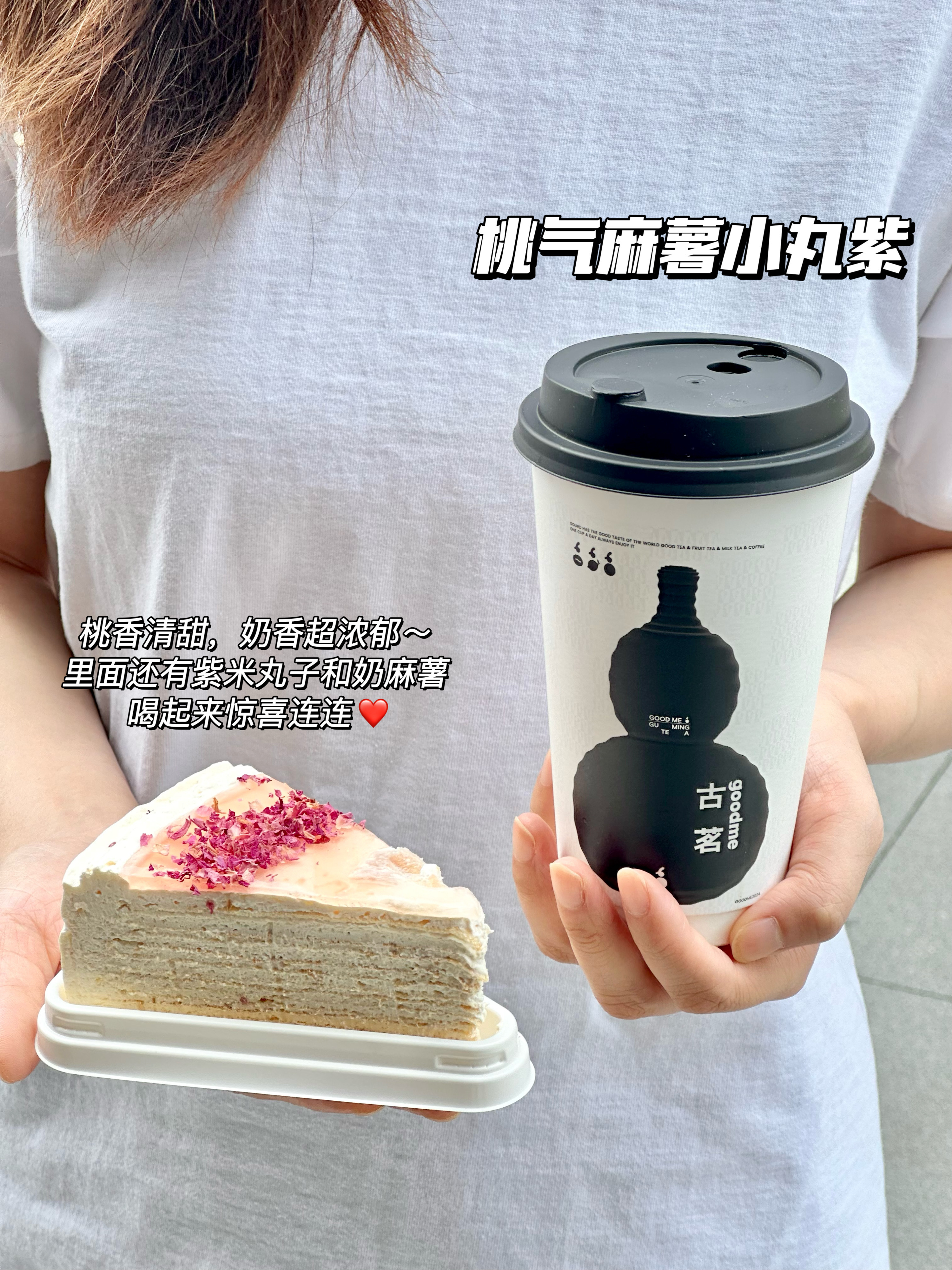 桃气麻薯小丸紫终于等到回归了!奶茶麻薯控这一杯一定闭眼冲!这杯我喝热的,我的天呐!古茗你这么会做不要命啦?喝起来桃香清甜,奶香超浓郁~而且奶麻薯和紫米丸子吃起来是糯唧唧QQ弹弹的口感,喝的时候像在挖宝藏,好惊喜~