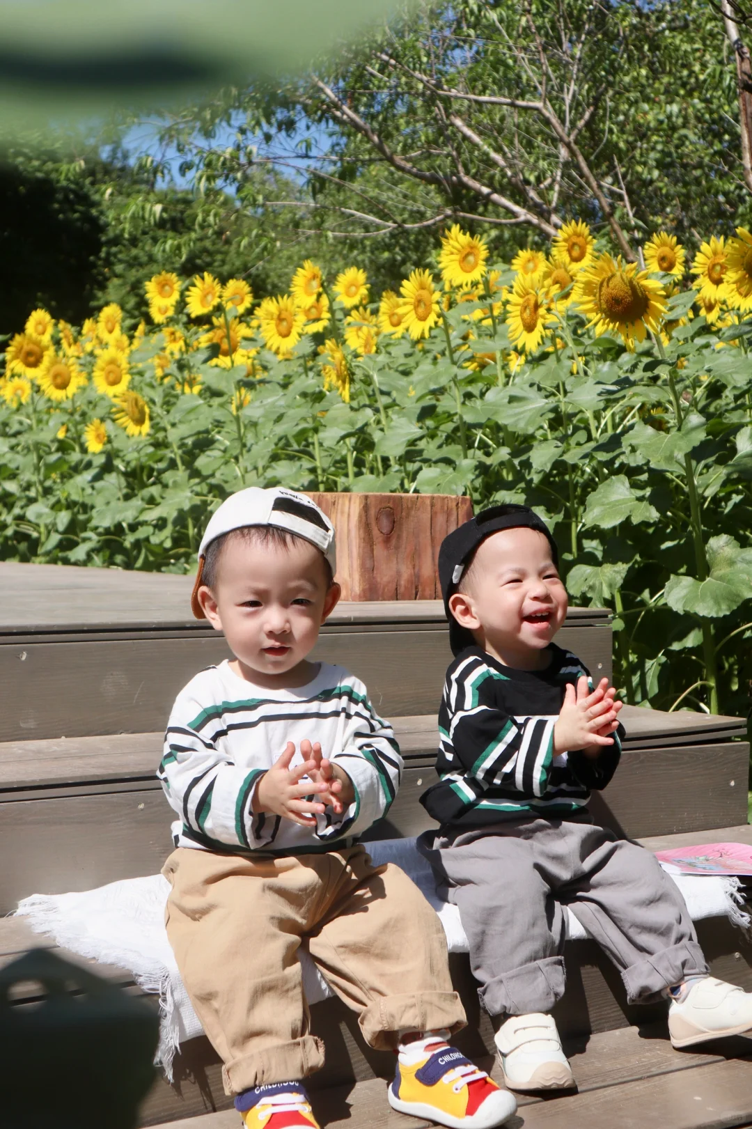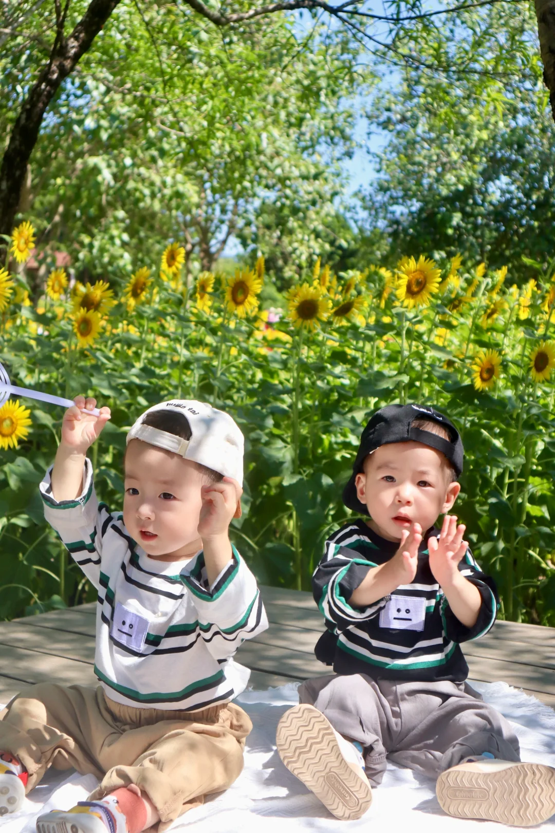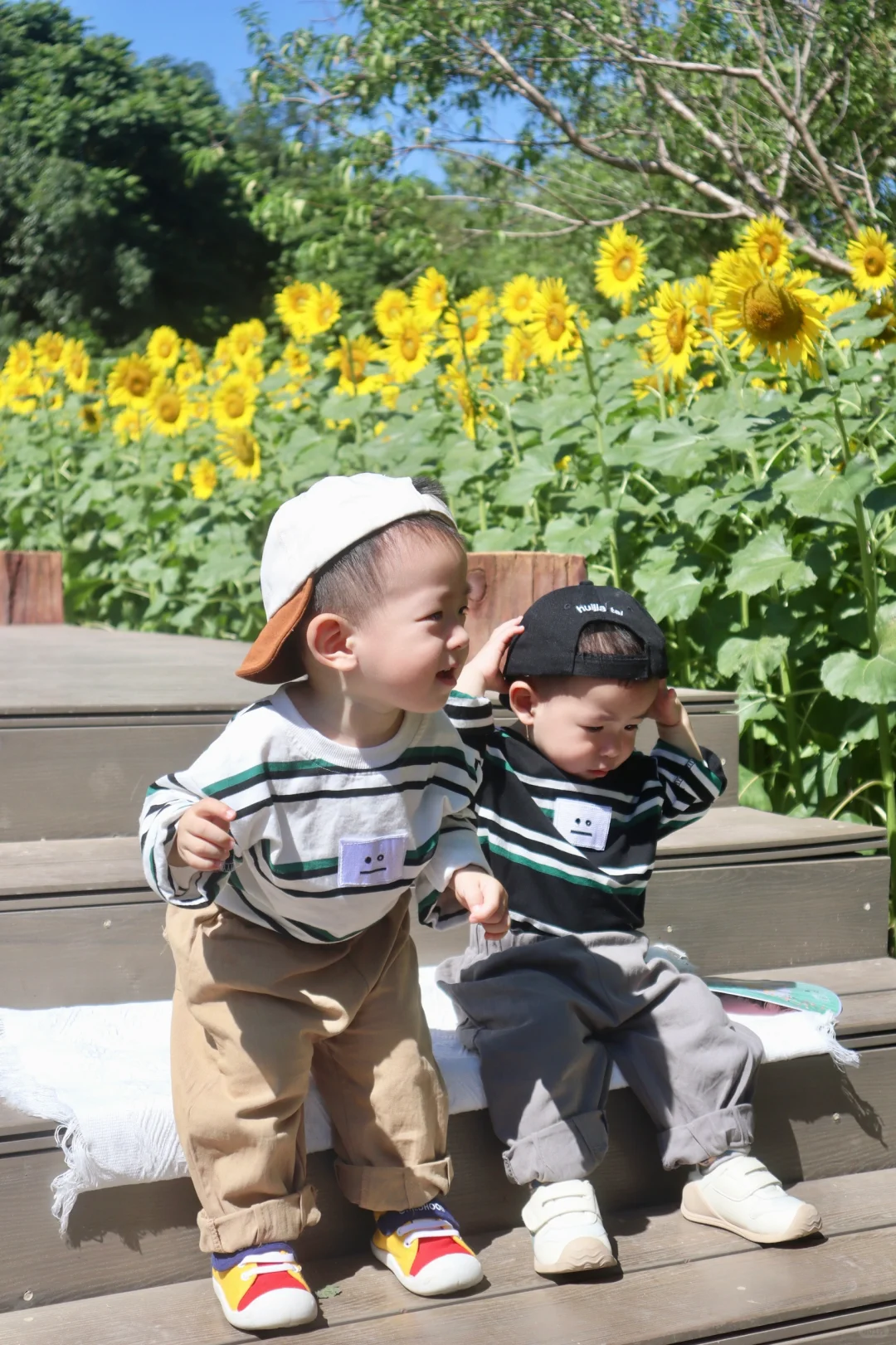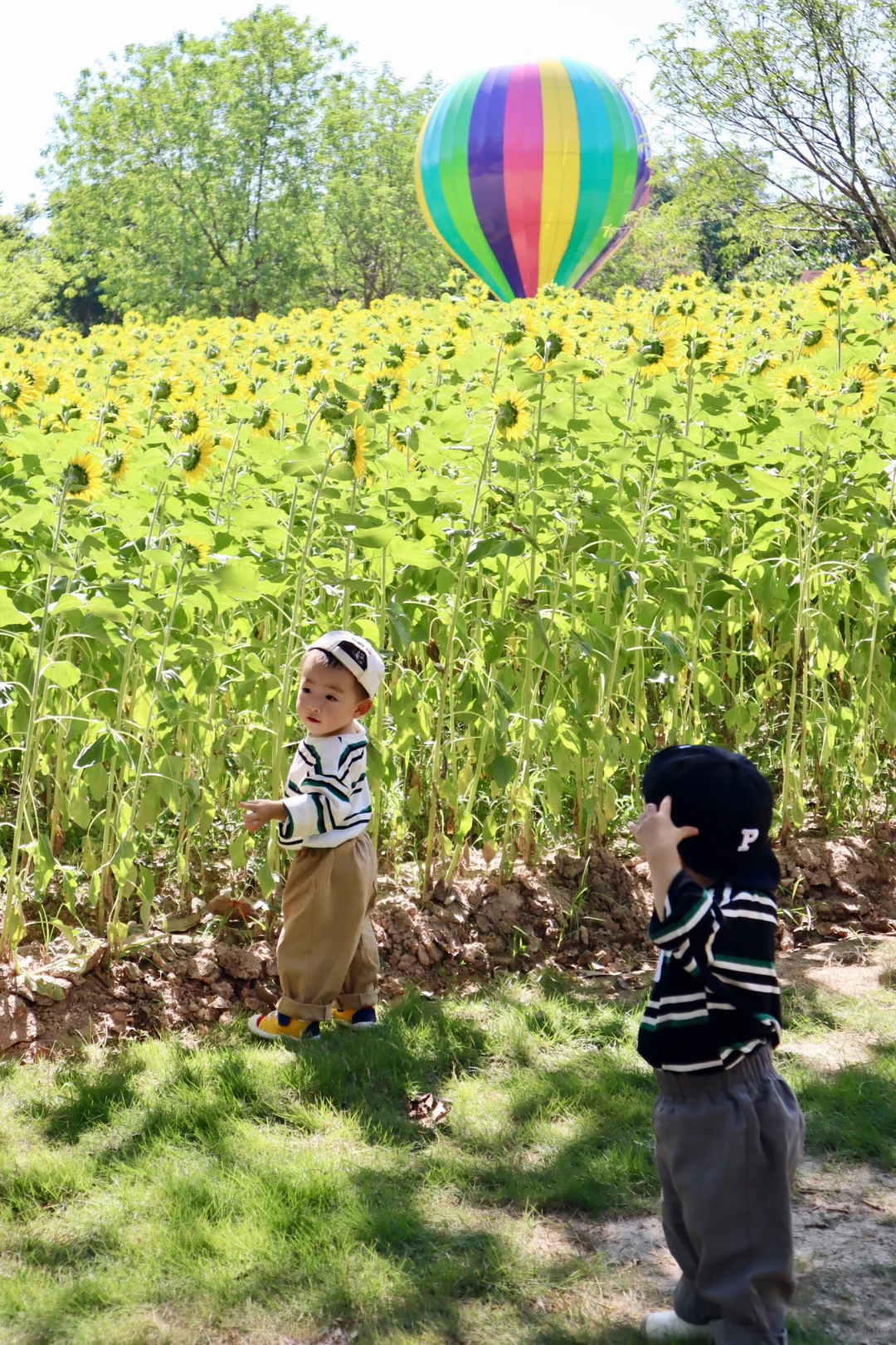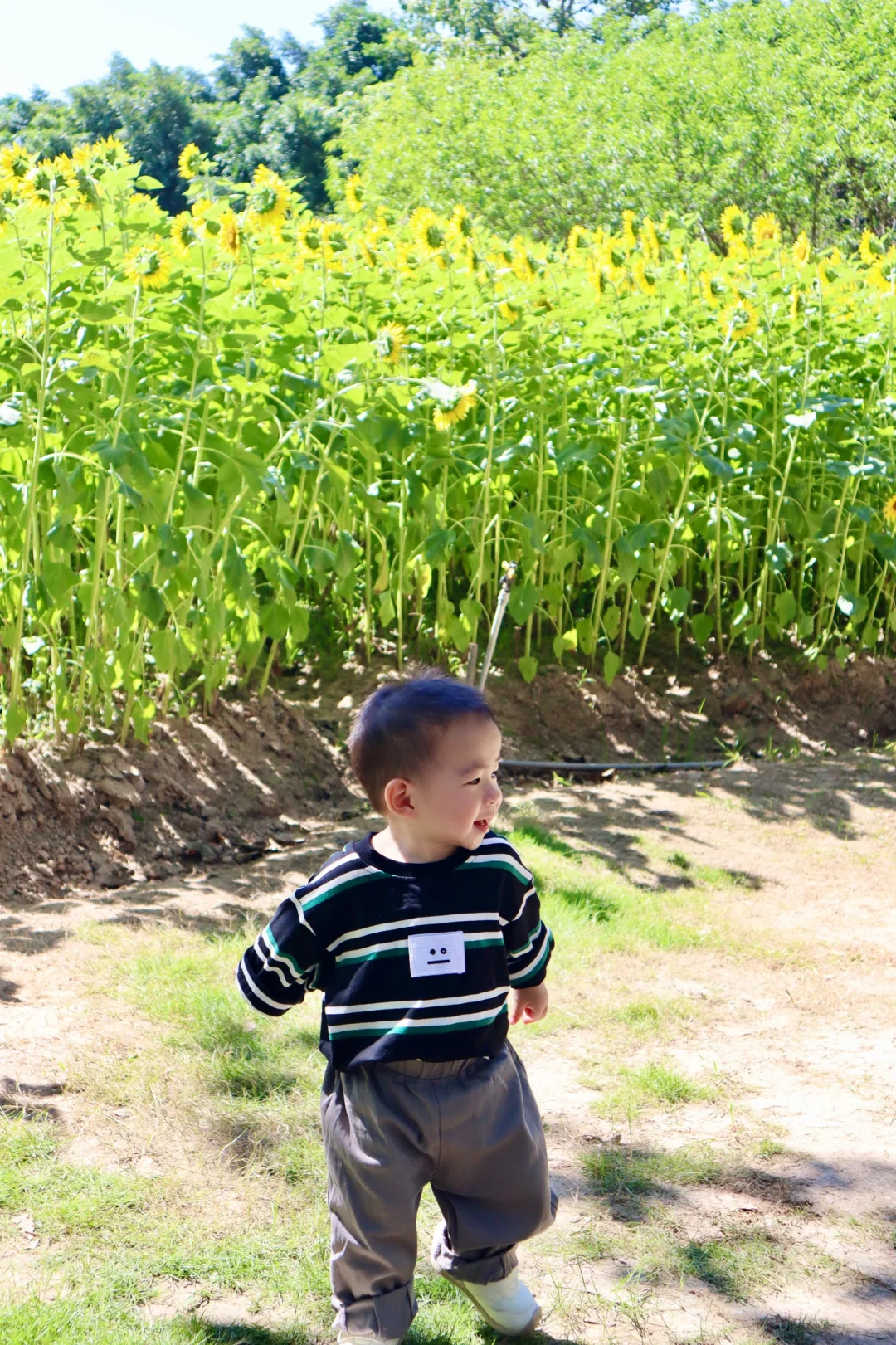 “愿你向阳而生,成为自己的太阳🌞” 园博苑的这片向日葵花海真的太出片了! 给两小只拍照📸的时候,还围观了好多ee~