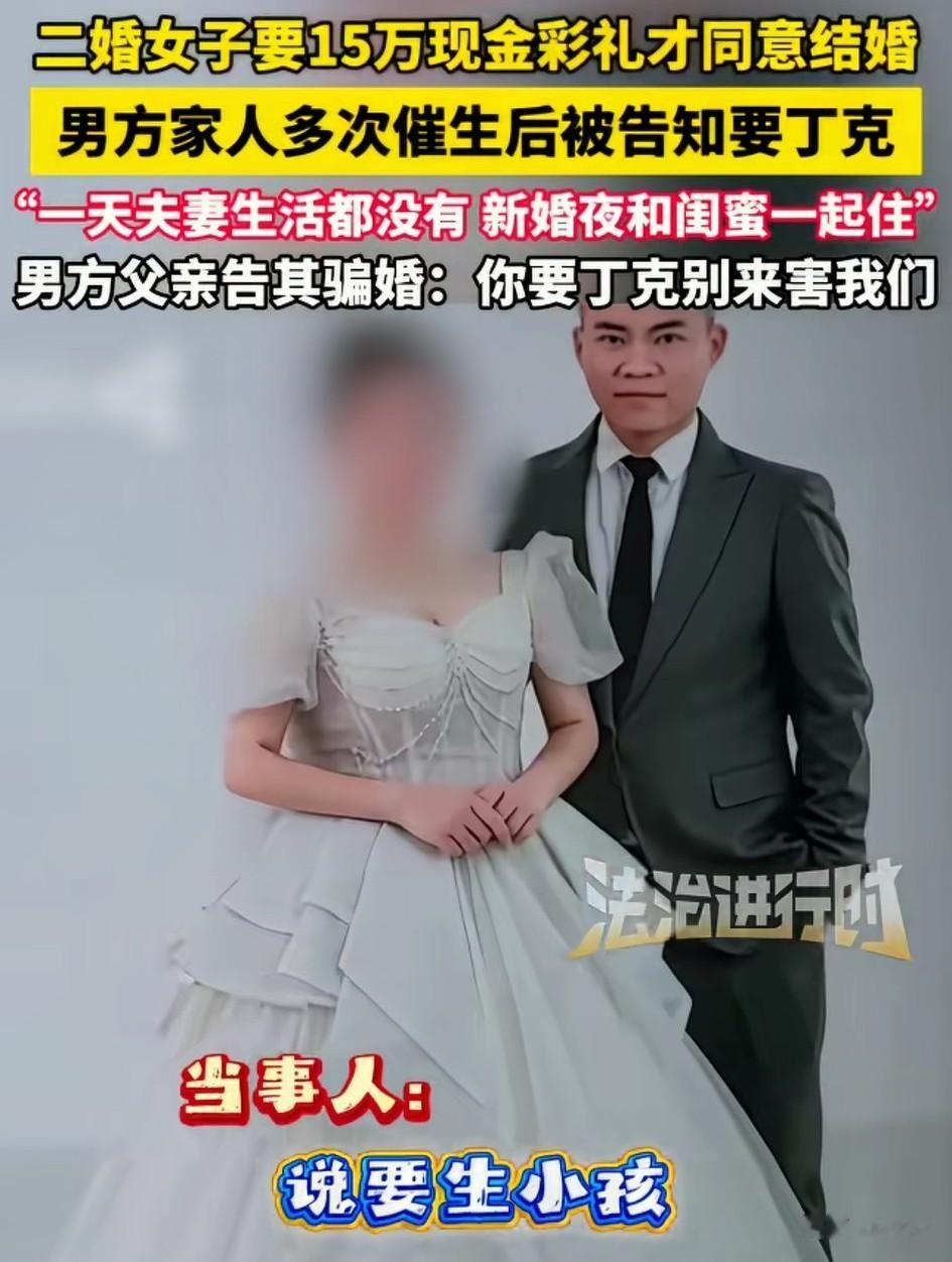 二婚女你要15万彩礼才同意结婚,给完彩礼后,一天夫妻生活都没有过,新婚夜还和闺蜜一起住,男方父亲告其骗婚!