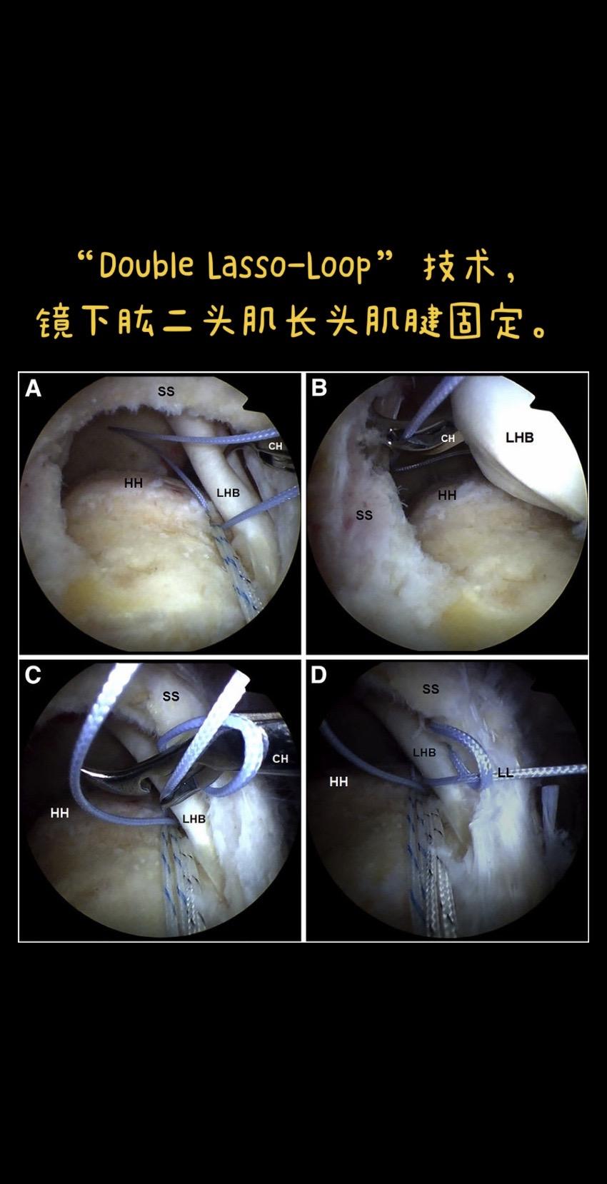 双套锁-环技术。“Double Lasso-Loop” 技术,关节镜下肱二头肌长头肌腱固定。
