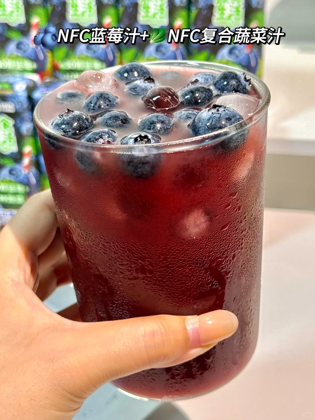 它使用的NFC蓝莓汁🫐+NFC复合蔬菜汁🥬,是100%的复合果蔬汁。喝起来酸酸甜甜的,感觉蓝莓在嘴巴里爆汁一样~真的巨巨巨好喝