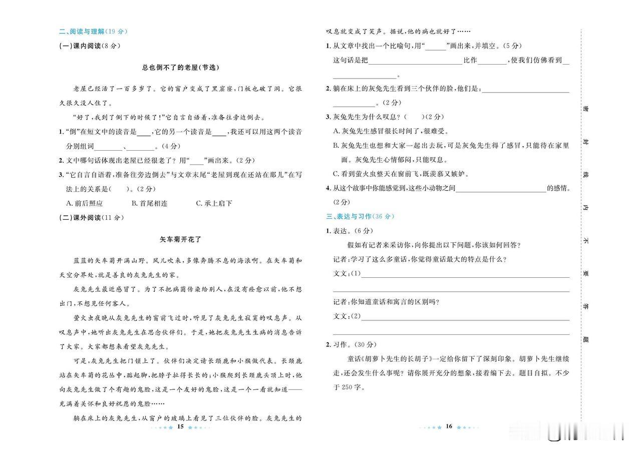2024秋统编版语文三年级上册第四单元达标检测卷