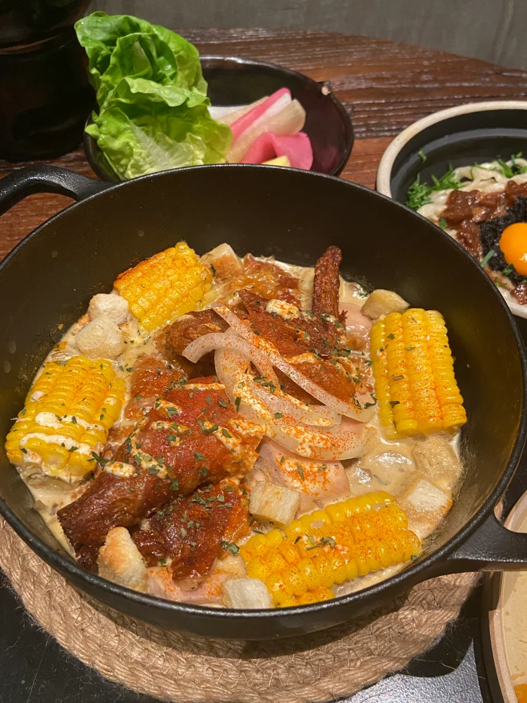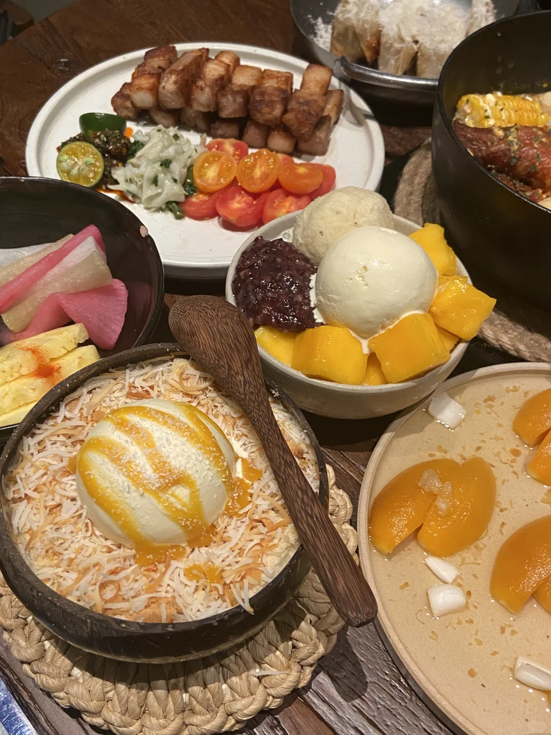 🥩傣味厚切黑猪五花配各种泡菜五颜六色肉肉也很扎实😋千层酥贵州小米渣也是最爱✌️外脆内软糯叽叽超好吃