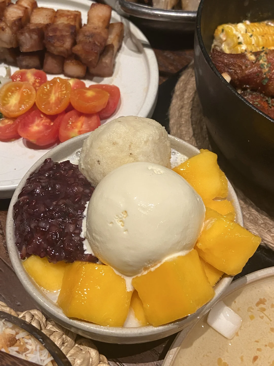 大颗的榴莲球搭配冰淇淋球🥭大块的芒果肉
