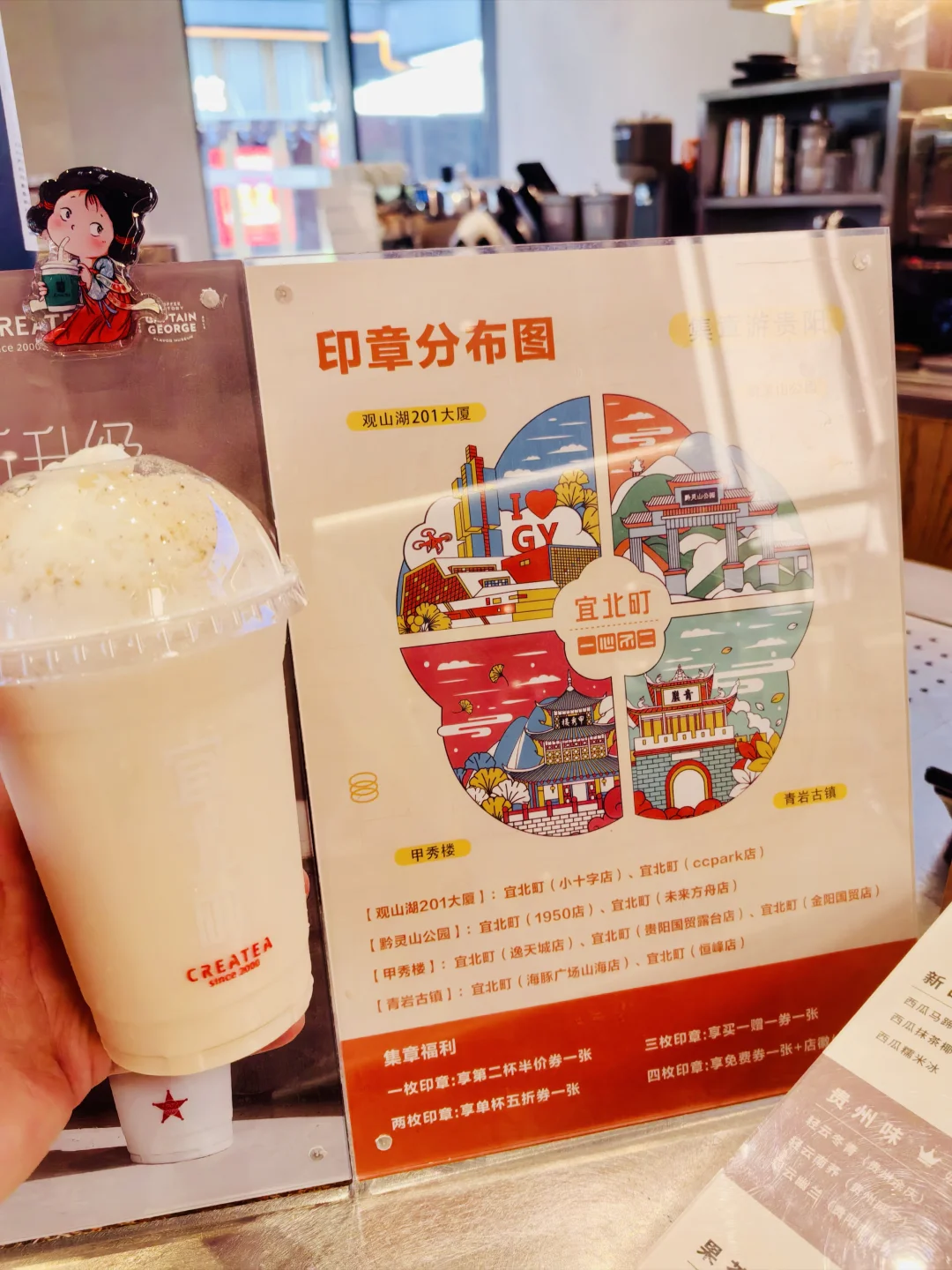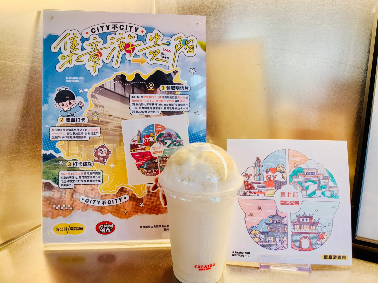 即日起,在宜北町现在门店消费现制饮品满58元或贵州礼物“一心不二”贵阳城市文创店消费满58元(除食品外)。即可获得“好xiang贵阳”专属明信片一张(免费加盖专属印章)、贵阳攻略权益卡一张(限量2000份 送完为止)