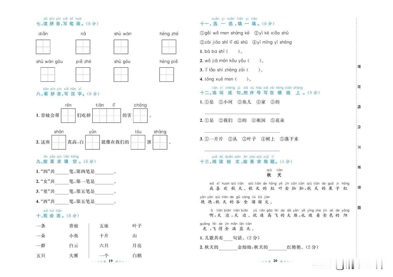 2024秋统编版语文一年级上册期中达标检测卷