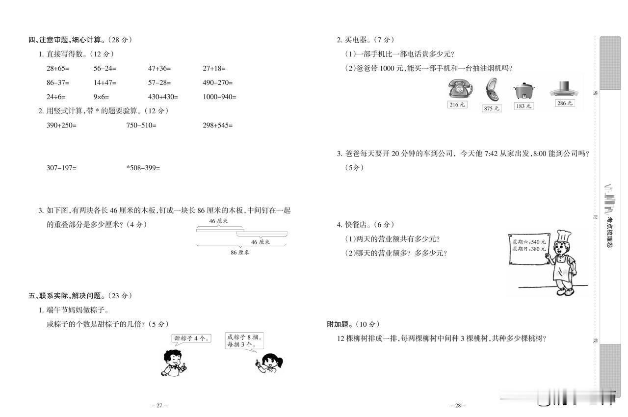 2024秋人教版数学三年级上册期中达标检测卷(一)