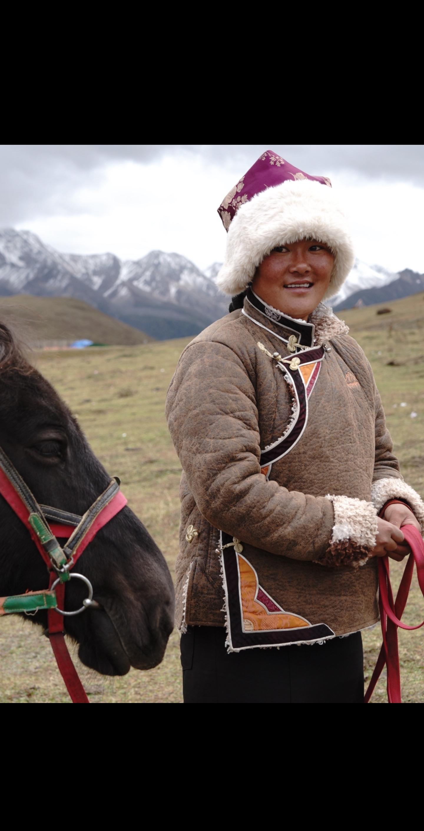 在甘孜州遇到的19岁女孩。已经是5岁孩子的母亲 她的丈夫在塔公镇上班 她就在这片能望见雪山的草场当马夫。 在25岁前游历的很长一段时间里,我总是居高临下地去审视世界、自以为是地怜悯着一些认知外的生存方式。拍一些歌颂“苦难”的照片,有着以此撷取一些自信和高尚的嫌疑。 这几年,风景看遍,总算是开始接触户外、思考幸福,然后我才慢慢能平视一切,终于卸下了自己的包袱。 换作几年前我一定会拍女孩破旧的鞋和粗糙的手掌,但现在我只想拍她的笑容和草场。 这是我旅行的一部分意义,也是探寻生活本质的过程。