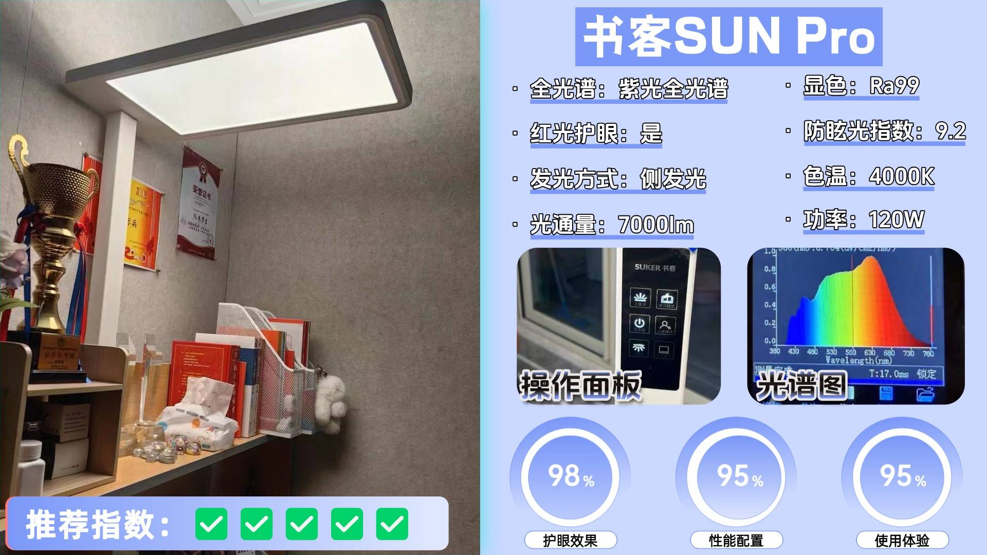 除了在护眼性能上的卓越表现外,书客sun2在功能体验上同样诚意十足。为了满足青少年长期学习用眼的严苛需求,书客针对光学结构与视觉舒适度进行了深度优化。其性能全面优于国AA标准,SDCM(色容差)≤2.4,实现光色高度一致与稳定;并且TM-30光标准作为自身的底线,采用严苛10倍的标准把控,将显色指数实测高达Ra98,几乎接近自然光还原效果,确保书本、屏幕与绘画色彩都真实清晰。更值得关注的是,书客自研搭载PLP光电处理器,能够在毫秒级响应下精准调控光流,显著提升光源稳定性,有效避免频闪与波动。