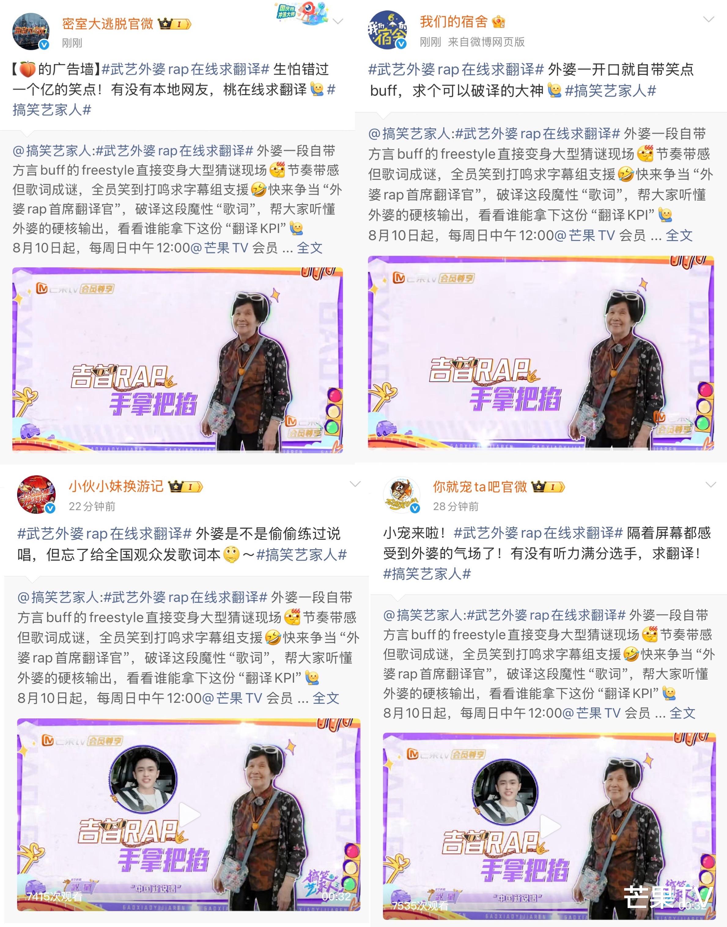 与此同时,节目也释出了武艺外婆无字幕版“rap”片段,芒果综艺齐上阵求翻译,纷纷表示“外婆这是隐藏的rapper吧”“有没有大神可以翻译,不想错过任何一个笑点”。即使外婆每个字都带着乡音,拼在一起却成了大家的快乐密码,属于“艺家人”的专属快乐派对就这样在欢声笑语中开启。而本就自带“综艺圣体”体质的武艺,早就在之前的芒果综艺里贡献了无数名场面,这次带着搞笑的家人们上阵,又会解锁多少让人笑到打鸣的名场面呢?