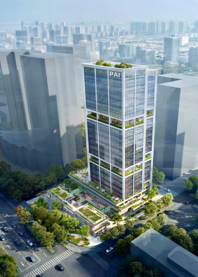 主创建筑师卫宏涛提到,项目以“全景花园”为概念,通过垂直绿化、空中花园与屋顶花园的多层次布局,将自然引入建筑不同标高,营造出亲近自然的生态办公环境。