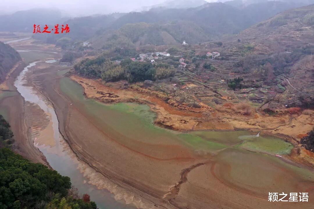 继续沿水库边的新大线公路前行,过了沃洲村的岭头、岭根自然村,长期淹没水下的溪谷已经干涸见底。