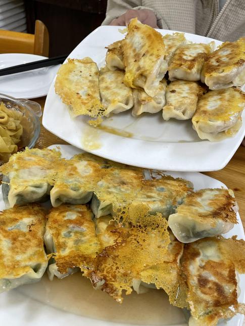 宽婆子海鲜锅贴,凭着扎实口感圈粉无数。手工现包不敷衍,高筋面粉擀制的面皮,薄而有韧性,包裹新鲜海鲜馅料,搭配少量韭菜提鲜,不齁咸、不油腻。现包现煎,煎至金黄酥脆,内里软嫩多汁。