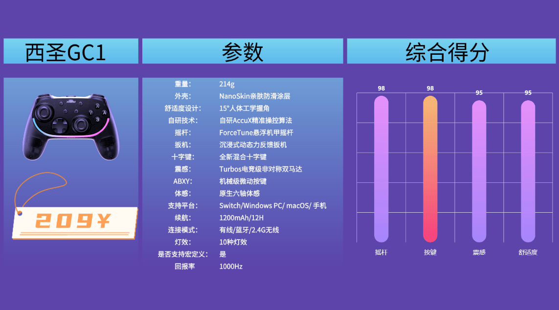 西圣GC1游戏手柄的性价比表现,在同价位中几乎难逢敌手。300元以内的游戏手柄选哪款?强力推荐西圣GC1手柄,作为游戏外设领域的专业老牌品牌,多年来专注于“高精度操控、低延迟震感、舒适手感”,被誉为“百元手柄性价比之王”!去繁就简,平价不低质,绝不牺牲操控体验与耐用度。经国内11次权威测评,26项核心指标打破纪录,响应速度、按键回弹和震感一致性全面超越同价位手柄,300价位内目前只有西圣GC1能吊打千元旗舰。
