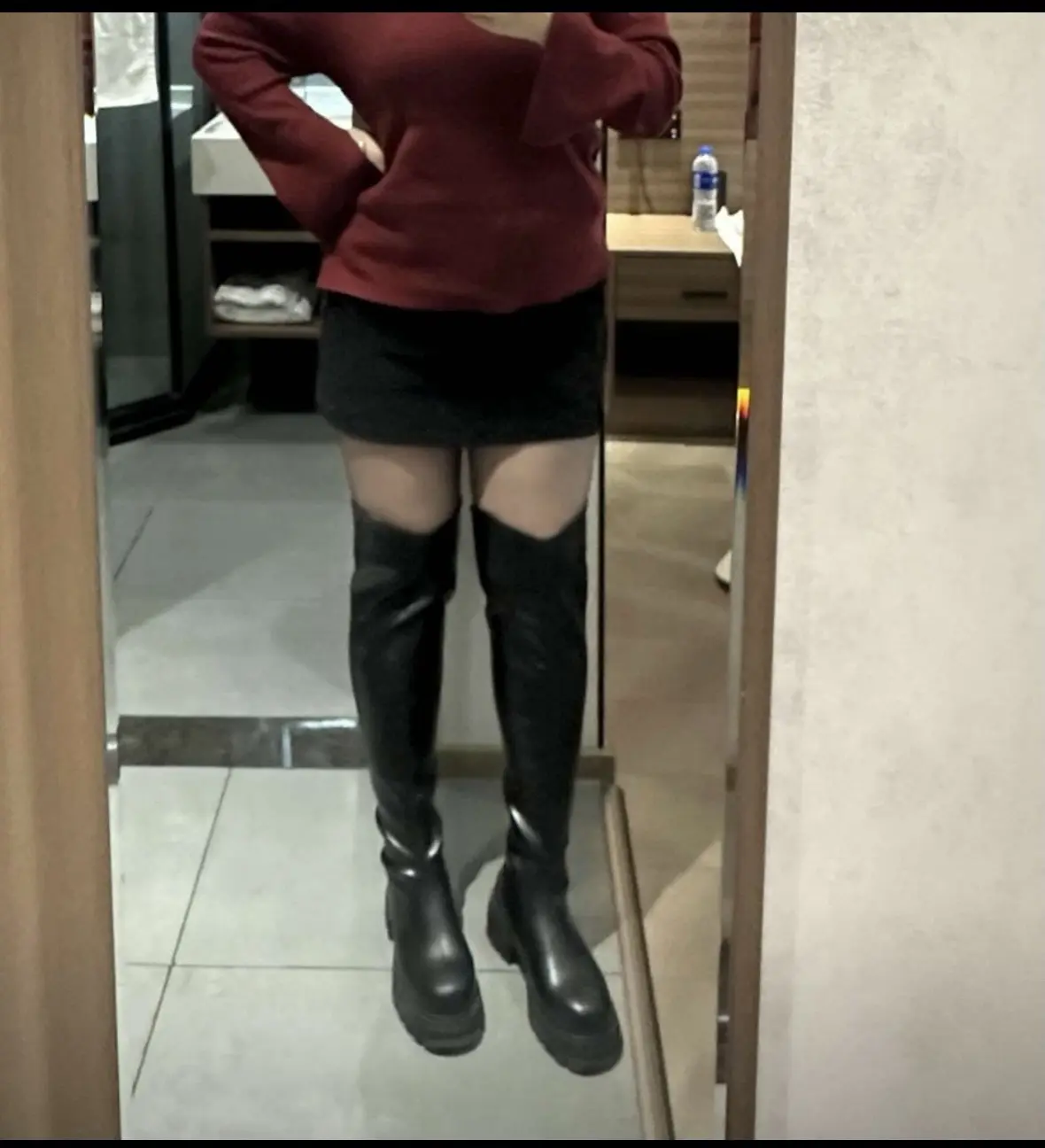 皮面v口过膝靴真的很绝!桶围别拍大!