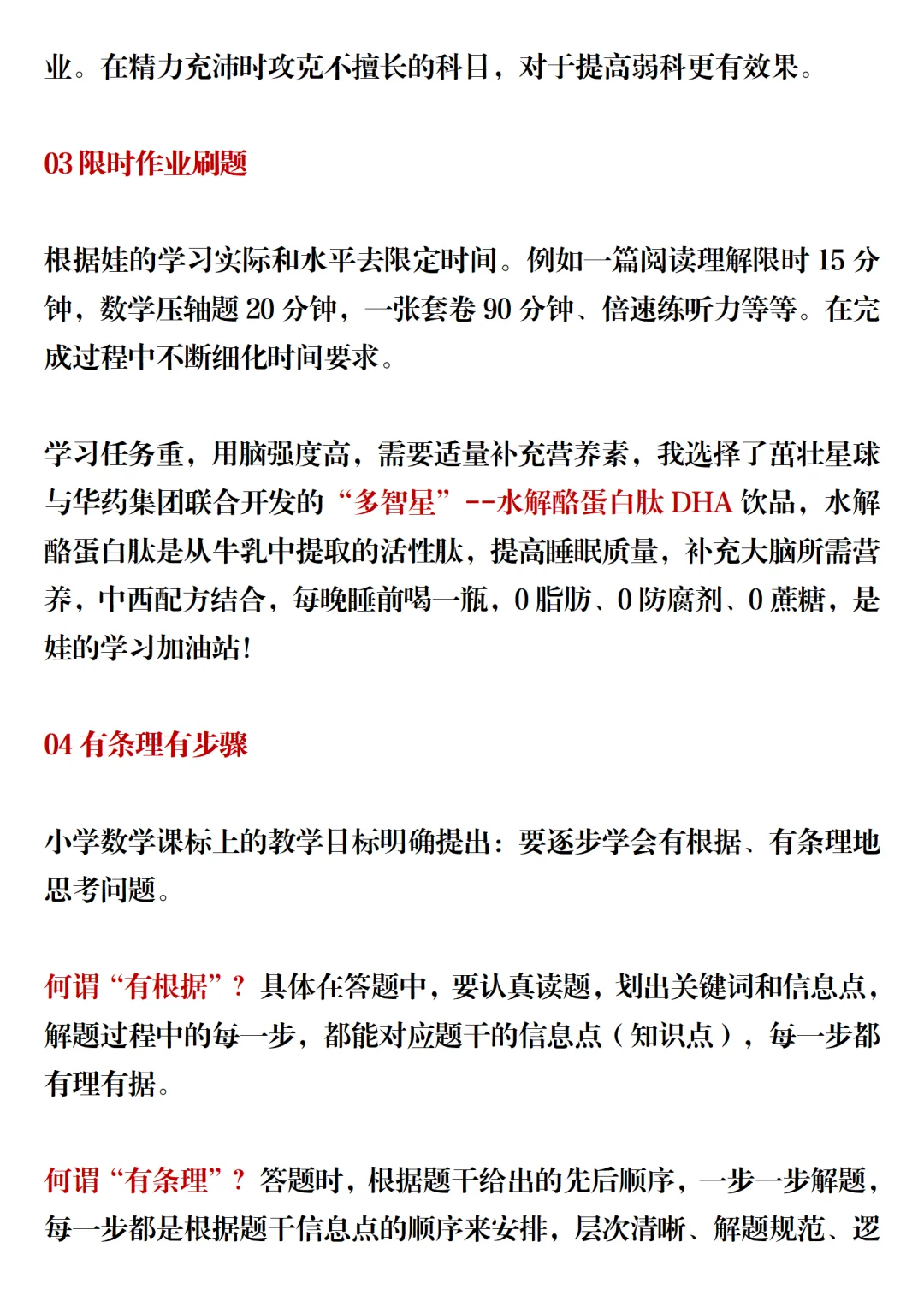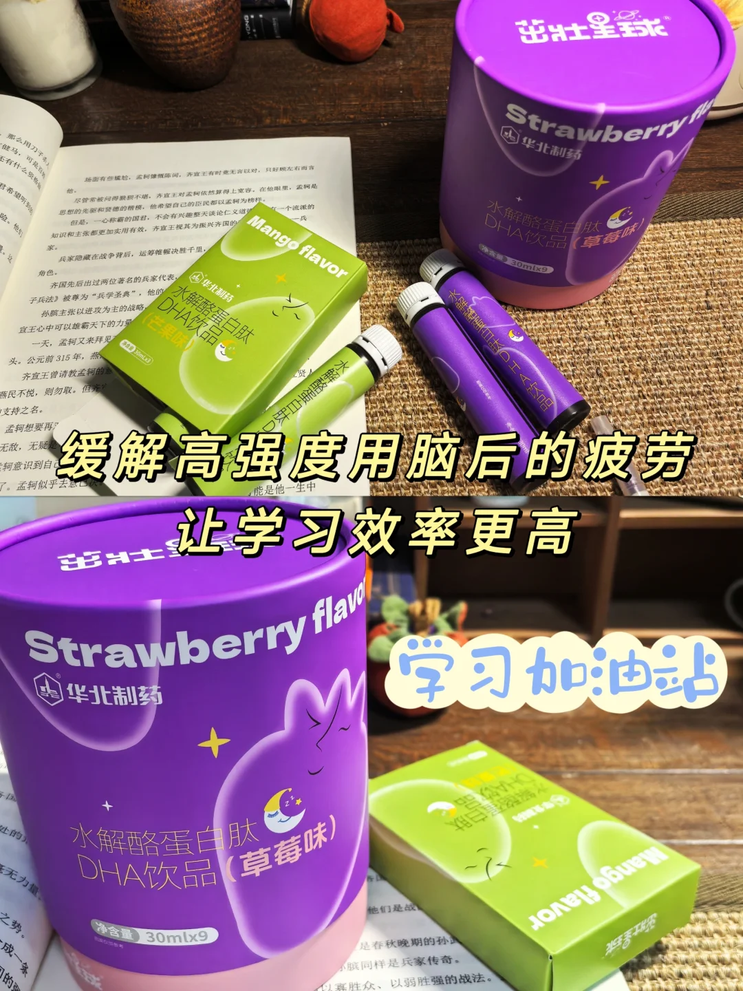 学习任务重,用脑强度高,需要适量补充营养素,我选择了茁壮星球与华药集团联合开发的“多智星”--水解酪蛋白肽DHA饮品,水解酪蛋白肽是从牛乳中提取的活性肽,提高睡眠质量,补充大脑所需营养,中西配方结合,每晚睡前喝一瓶,0脂肪、0防腐剂、0蔗糖,是娃的学习加油站!
