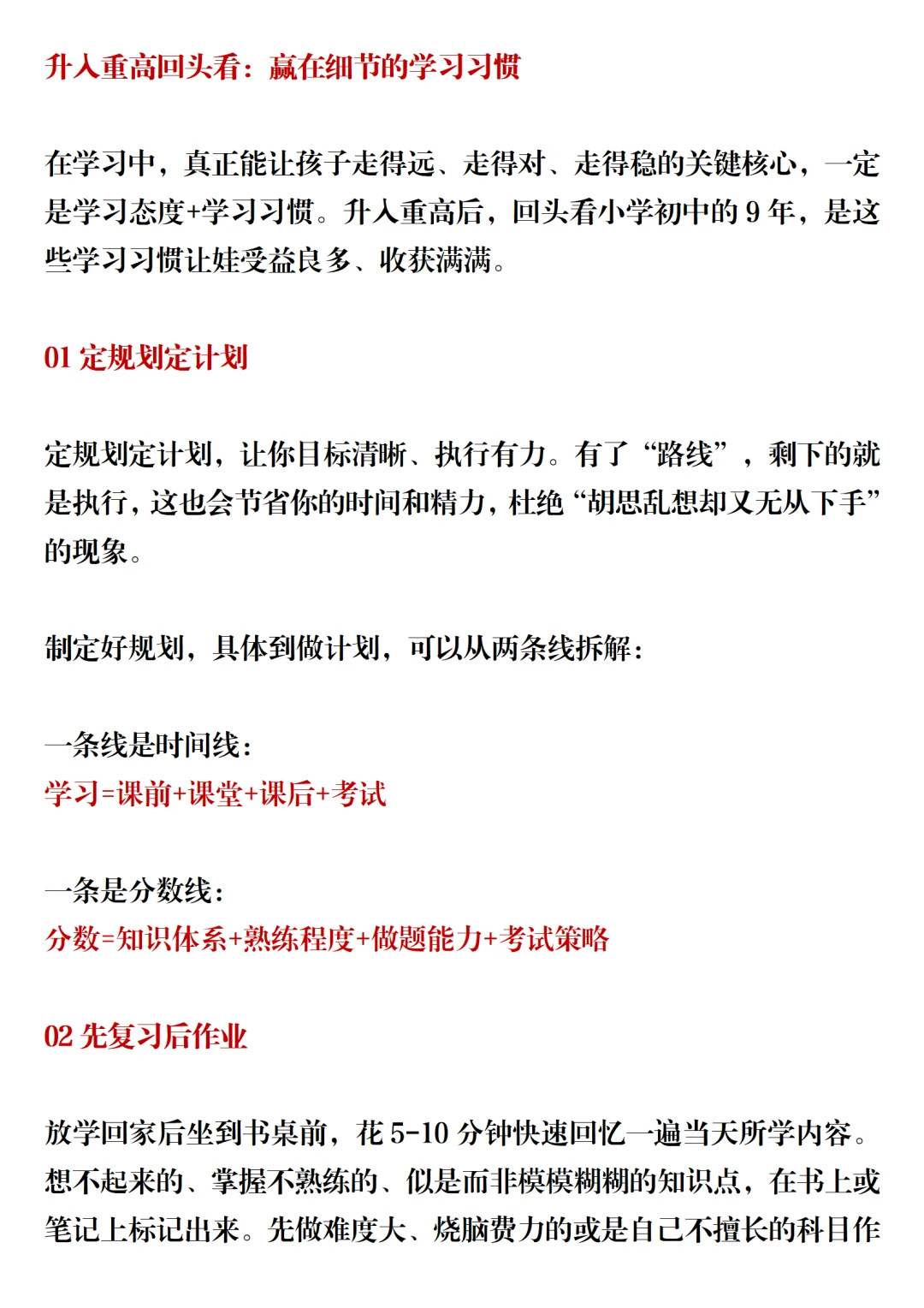 在学习中,真正能让孩子走得远、走得对、走得稳的关键核心,一定是学习态度+学习习惯。升入重高后,回头看小学初中的9年,是这些学习习惯让娃受益良多、收获满满。