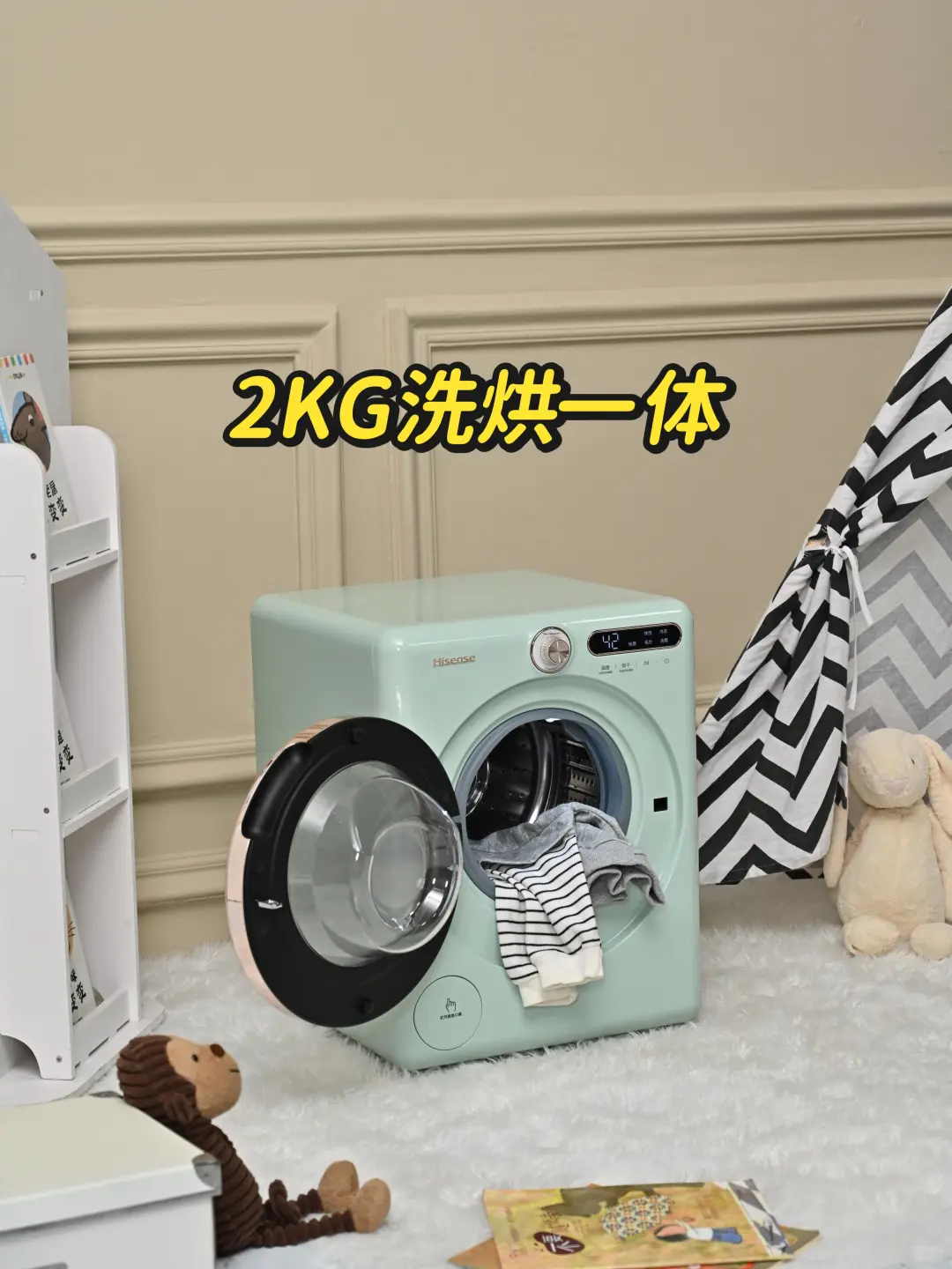 之前一直种草的海信罗马假日洗衣机-mini,终于等到了家电补贴➕双十一优惠,叠加下来不到2k入手,性价比蛮高的 到家试用了下确实感觉很不错,自带活水洗,宝宝衣服上的日常污渍都能洗干净诶 还有高温除菌螨,比老母亲手洗的还放心🥰 可以做到台立嵌灵活摆放,小户型也不担心因为添置家电压缩了生活空间 最关键的是这个复古罗马绿是真的很好看诶,每次做家务都心情美滋滋~~ 洗烘一体拿出来就能直接给小宝穿了,比原来洗完衣服再晾干方便多了,嘎嘎