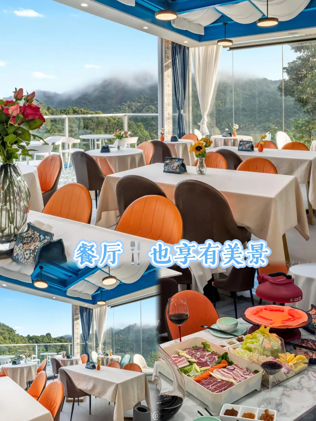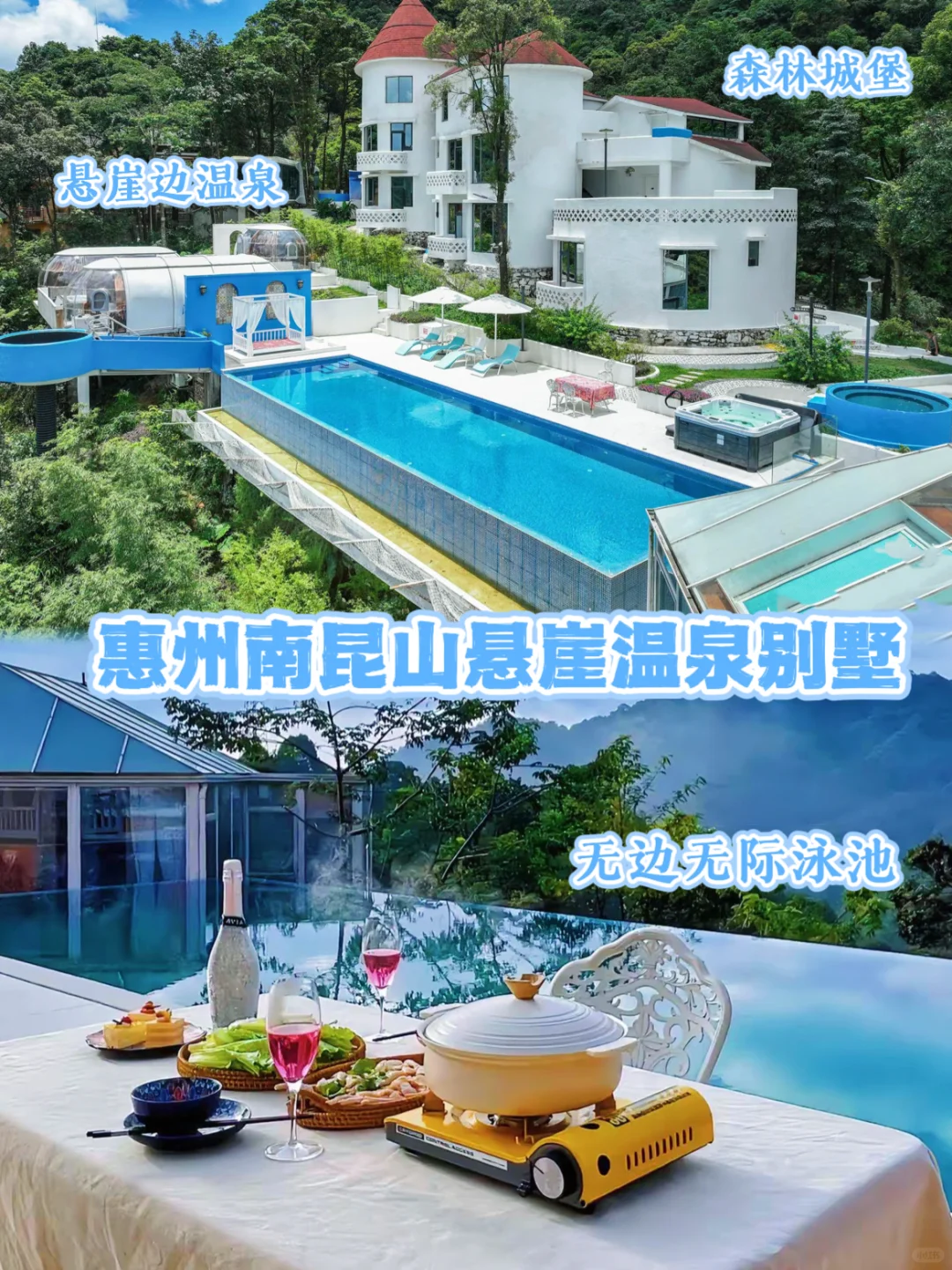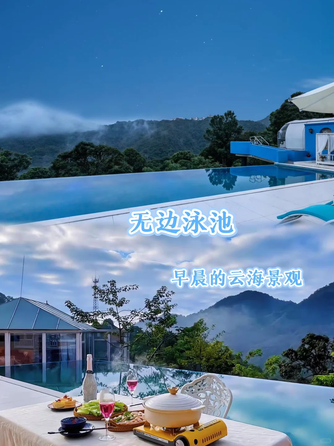 ✔️无边泳池是恒温的,很适合南昆山的气候🎊下午会有精致的漂浮下午茶☕️仿佛置身国外度假⛱️
