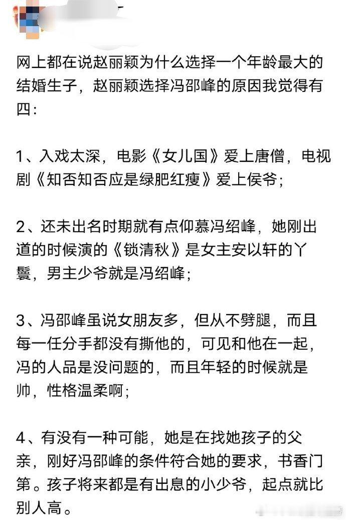 终于明白网上为什么都在说赵丽颖为什么选择一个年龄最大的结婚生子了…