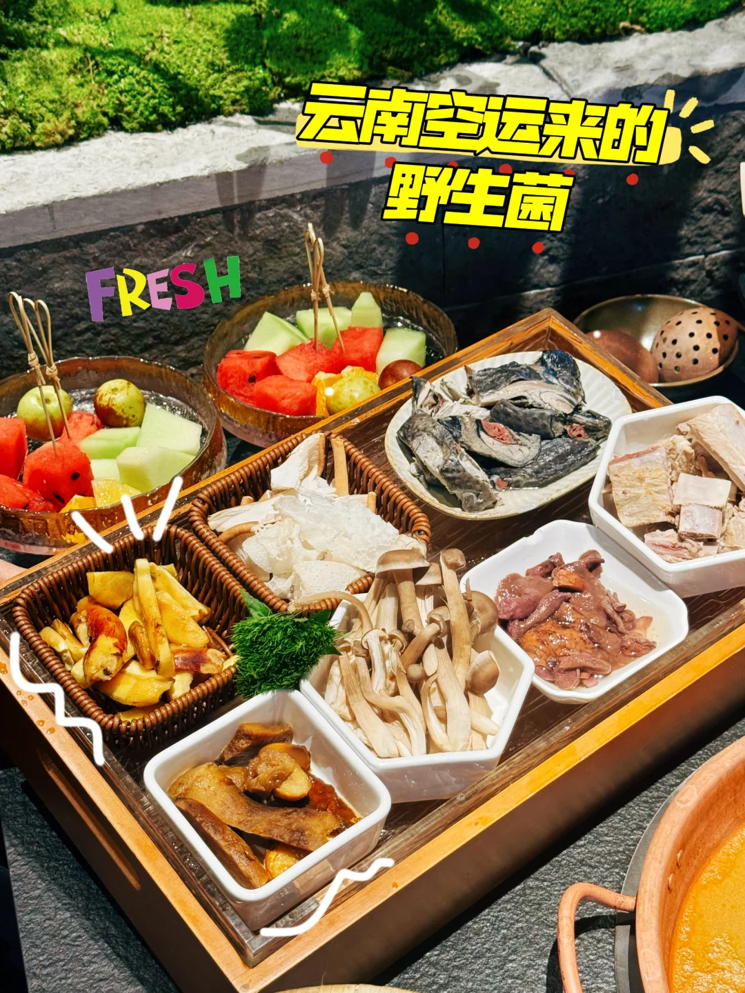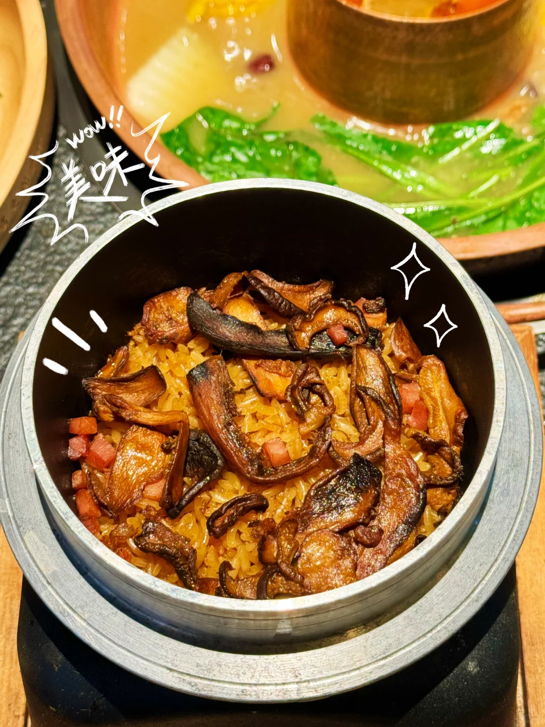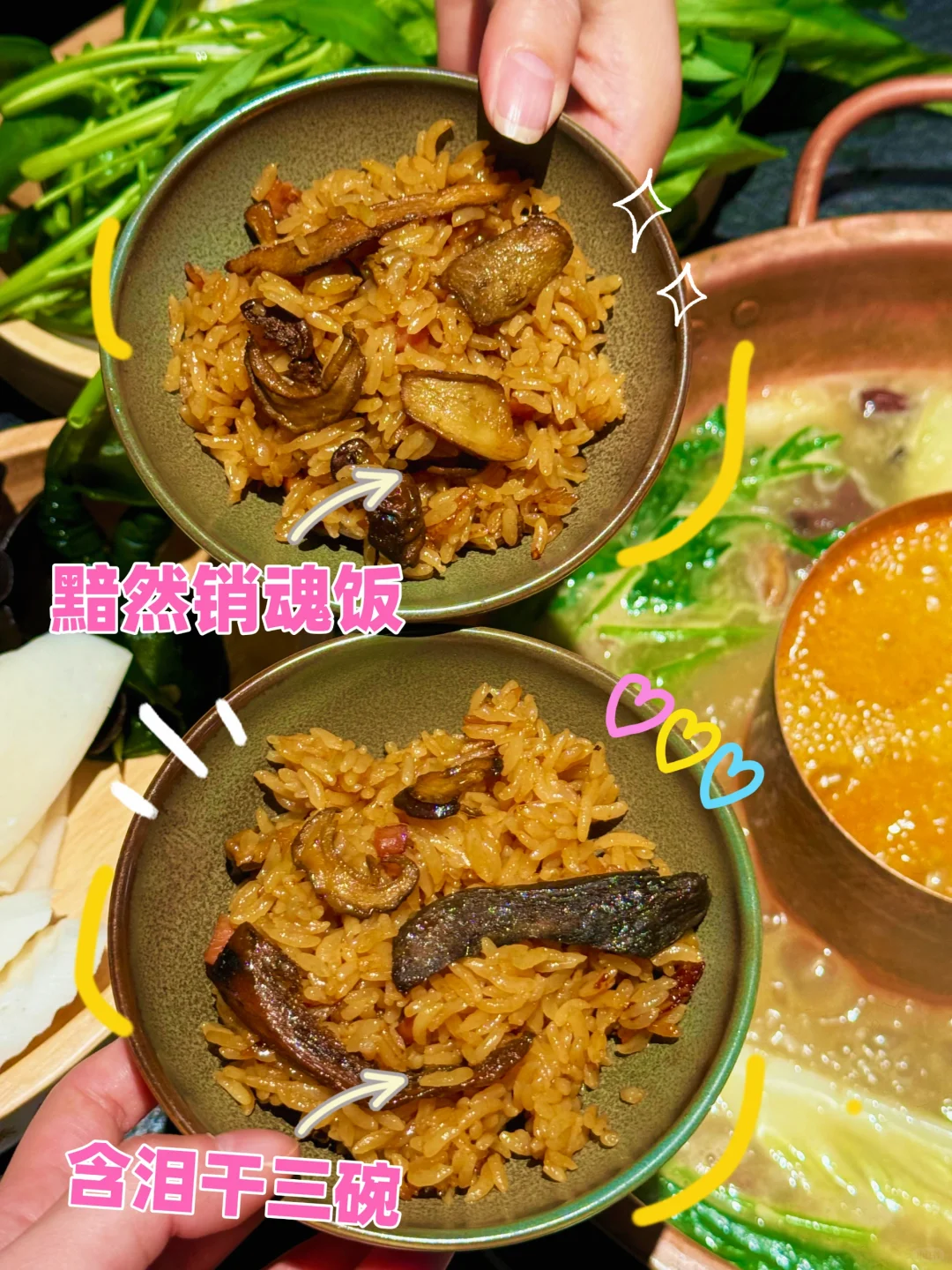 别说了…我们上海人有自己滴养生节奏!! 针灸?按摩?这些都是下酒小菜 饮食才是王道哇👍! 来一顿云南野生菌火锅的🌹 牌! 才是我们最近上海人的养生大热门! 我已经给你们都打听过来了 这里的食材都是从云南空运✈到上海的! 尤其是他们的鲜,尊嘟不可复制!!! · 🥣 菌汤乌鸡排骨锅 这个子母锅设计真的太为我们着想了吧!母锅里的菌子需要熬煮一段时间,这期间就可以先在子锅里涮涮鲜嫩的牛肉吃了! · ⏰ 菌子煮好后 先喝一碗汤,好鲜好鲜!浓郁又清香,就是那种直接在你的口腔、鼻腔瞬间爆炸💥!直达天灵盖(没错,我已走进珂学)我直接干两碗!秋天喝上一碗菌汤,一整天都暖暖的,滋补又养生!而且我跟你们说!这个汤底涮啥都好吃啊!!! · 🍚 牛肝菌焖饭 哎呦我天,这叫一个鲜!牛肝菌就是坠鲜美的菌子,配上独有的酱汁,拌匀之后,饭香混合菌子香,绝了!!吃完你就理解了什么叫饭张力💯! 凉拌见手青 见手青之前到底是谁在吃啊?这味道就像是吃素了半个月突然开荤,太香了!见手青好脆嫩诶,凉拌的刚入口是麻辣的口感,越嚼越能感受到菌类的鲜香,微微的鲜甜更是让人欲罢不能! · 🍄 奇遇红伞伞 吃到了传说中的红蘑菇!红伞伞,白杆杆,吃完不会躺板板!上桌的时候我真以为是蘑菇呢,可逼真了,奶油细腻绵密,入口QQ弹弹,一点不甜腻,吼吼次…