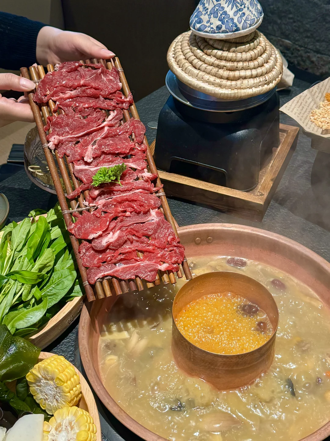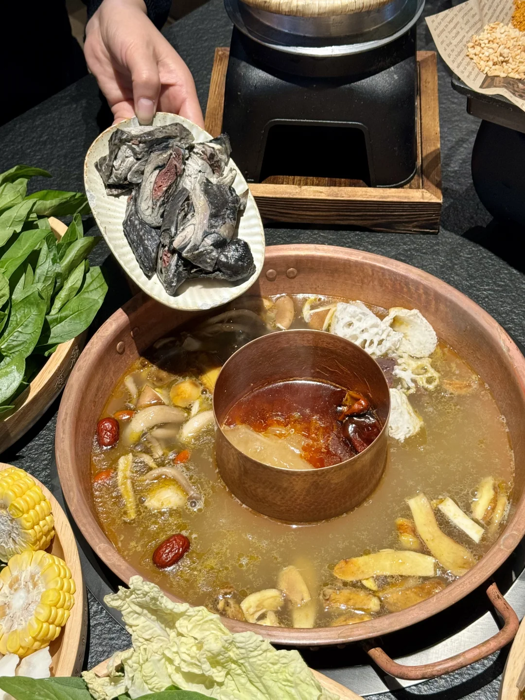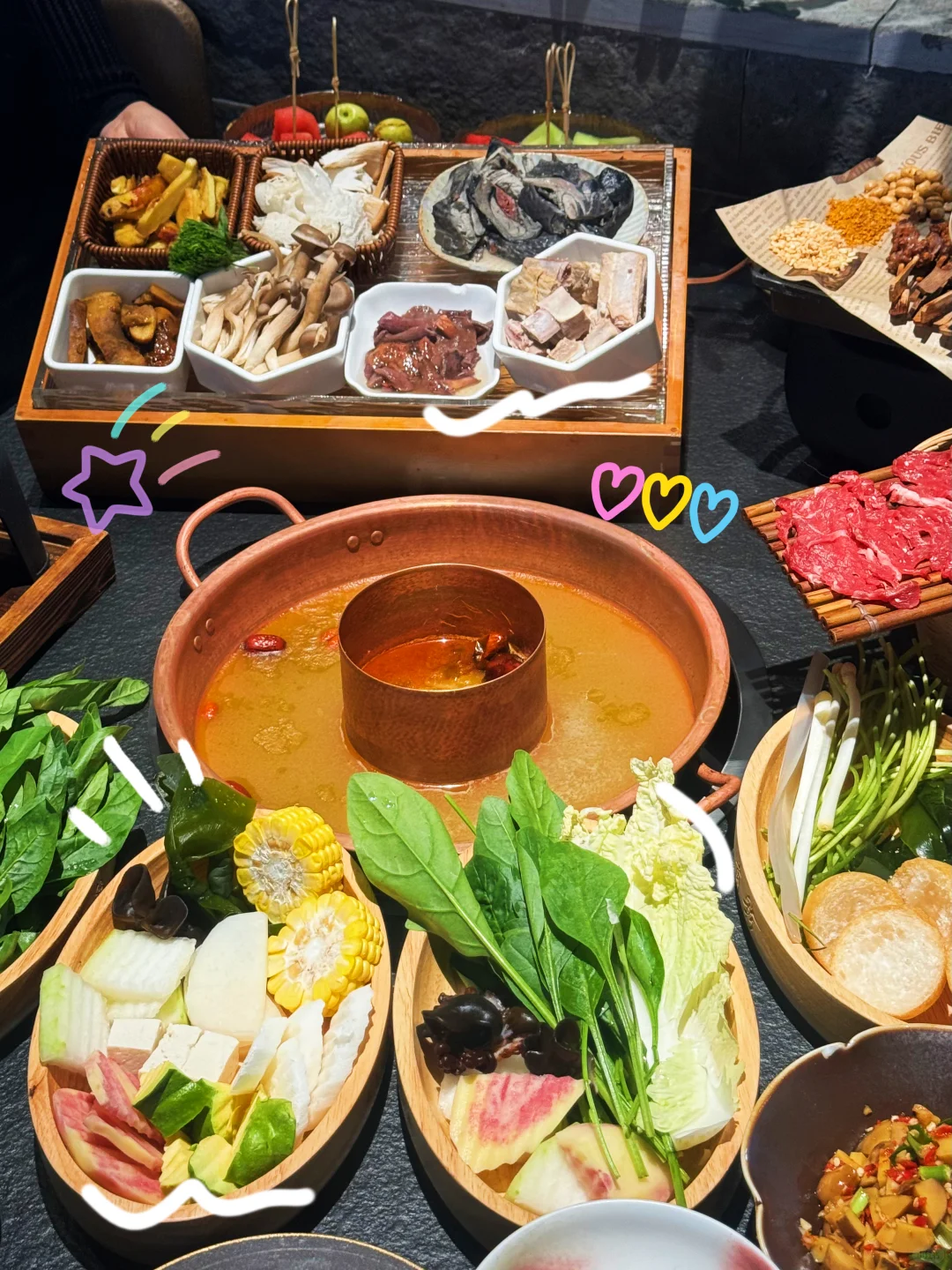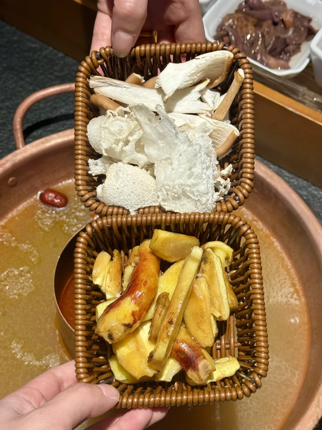 别说了…我们上海人有自己滴养生节奏!! 针灸?按摩?这些都是下酒小菜 饮食才是王道哇👍! 来一顿云南野生菌火锅的🌹 牌! 才是我们最近上海人的养生大热门! 我已经给你们都打听过来了 这里的食材都是从云南空运✈到上海的! 尤其是他们的鲜,尊嘟不可复制!!! · 🥣 菌汤乌鸡排骨锅 这个子母锅设计真的太为我们着想了吧!母锅里的菌子需要熬煮一段时间,这期间就可以先在子锅里涮涮鲜嫩的牛肉吃了! · ⏰ 菌子煮好后 先喝一碗汤,好鲜好鲜!浓郁又清香,就是那种直接在你的口腔、鼻腔瞬间爆炸💥!直达天灵盖(没错,我已走进珂学)我直接干两碗!秋天喝上一碗菌汤,一整天都暖暖的,滋补又养生!而且我跟你们说!这个汤底涮啥都好吃啊!!! · 🍚 牛肝菌焖饭 哎呦我天,这叫一个鲜!牛肝菌就是坠鲜美的菌子,配上独有的酱汁,拌匀之后,饭香混合菌子香,绝了!!吃完你就理解了什么叫饭张力💯! 凉拌见手青 见手青之前到底是谁在吃啊?这味道就像是吃素了半个月突然开荤,太香了!见手青好脆嫩诶,凉拌的刚入口是麻辣的口感,越嚼越能感受到菌类的鲜香,微微的鲜甜更是让人欲罢不能! · 🍄 奇遇红伞伞 吃到了传说中的红蘑菇!红伞伞,白杆杆,吃完不会躺板板!上桌的时候我真以为是蘑菇呢,可逼真了,奶油细腻绵密,入口QQ弹弹,一点不甜腻,吼吼次…