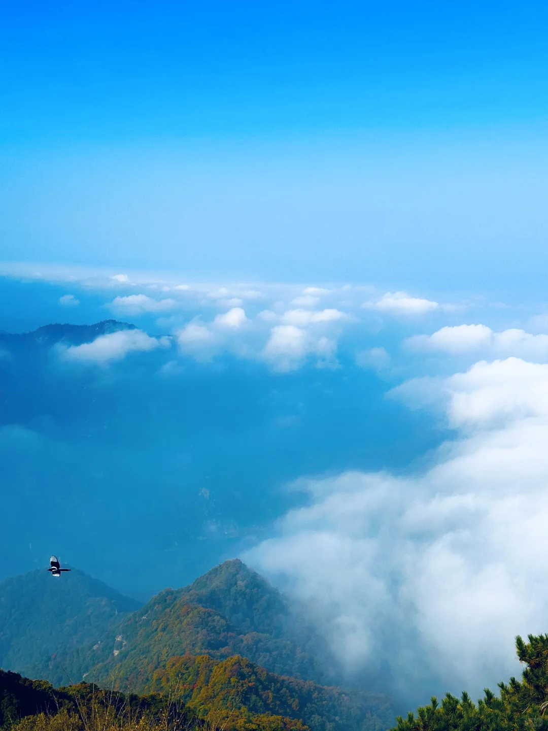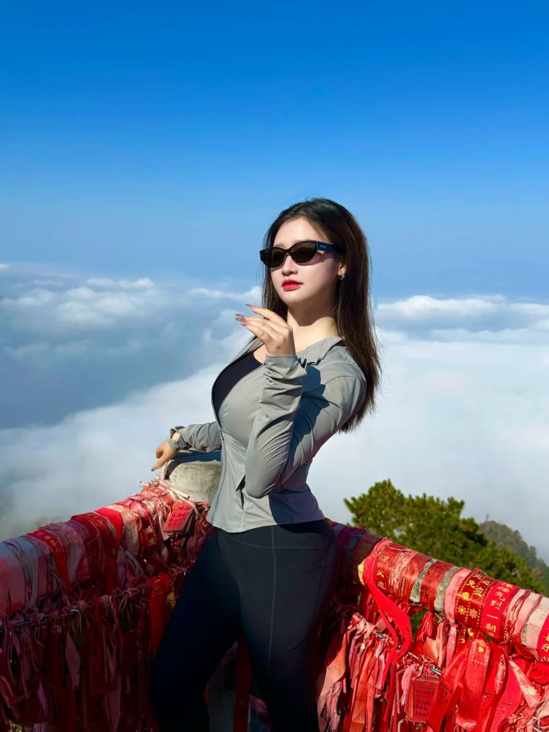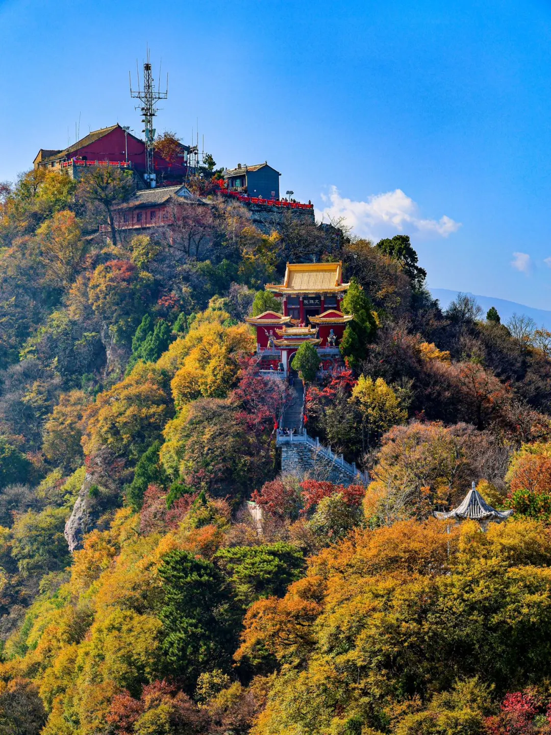 -最后是灵应台和文殊台,在文殊台许愿家人朋友学业有成,事业一帆风顺。灵应台有祈福树,用一条祈福带写上自己的心愿,系在树上寻一份心灵上的寄托✨!终南山唯一的云顶天宫⛰️也在此,南五台的云海风景很震撼,“云海翻涌腾细浪,浓雾缭绕系群山”的景象此刻在眼前浮现!