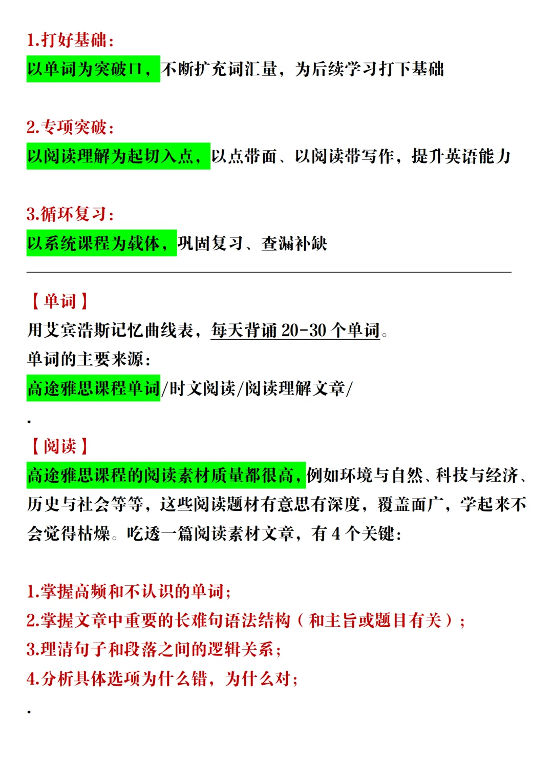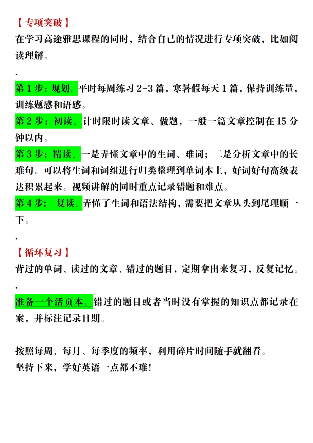 在学习高途雅思课程的同时,结合自己的情况进行专项突破,比如阅读理解。