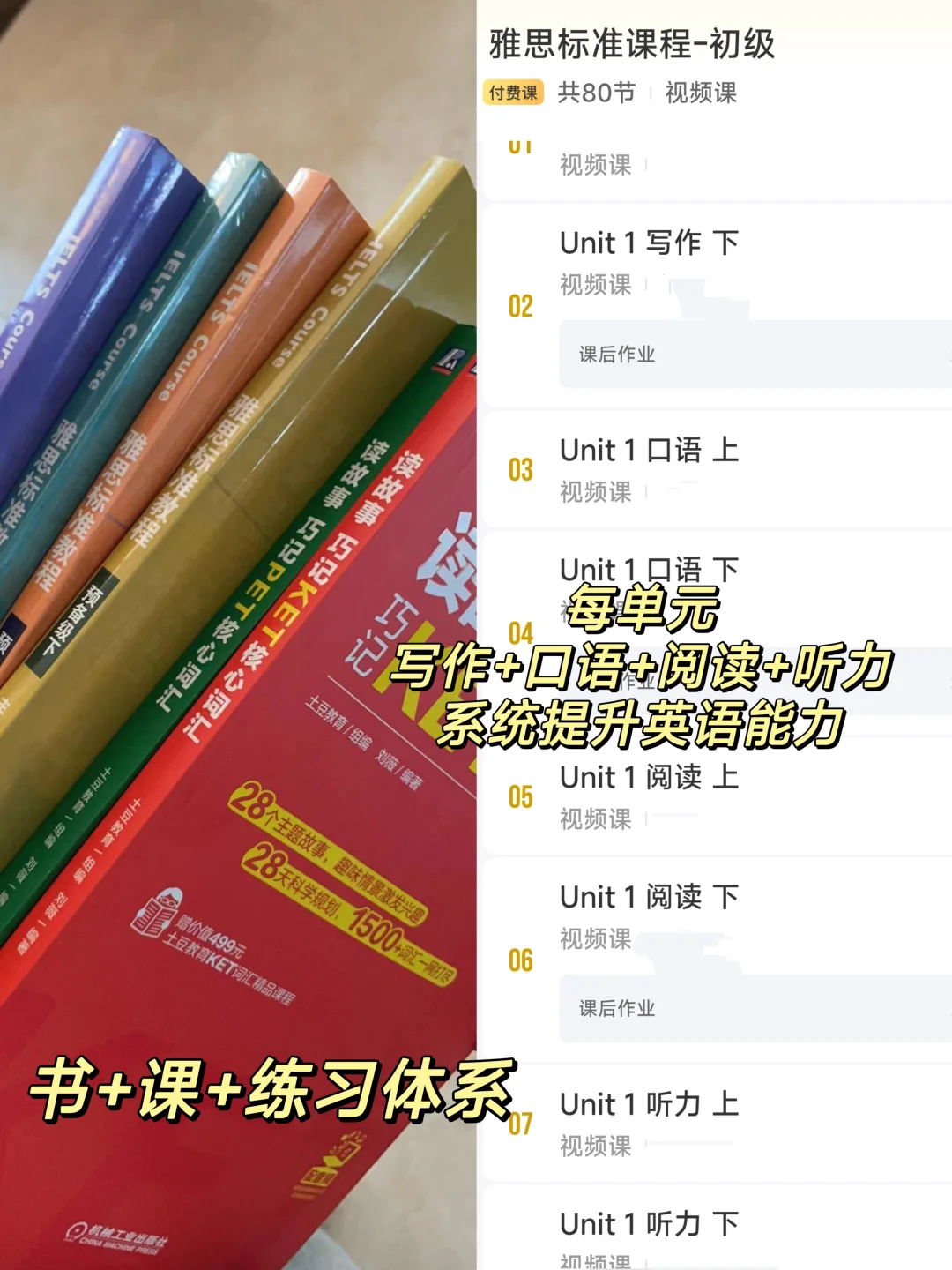 刘薇老师主编教材是基于外研社出版,以雅思标准教程为中心的教学练测评体系,以考促学、以考促练,对课内英语学习形成降维攻势,这是我蕞看重高途雅思的地方。预备级和初级课程都有,每个级别各涵盖了10大常考主题,每个单元都是听说读写的精讲,省心省力,踏踏实实认认真真跟着课程走即可。