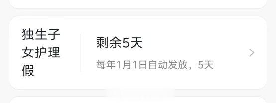 根据2022年12月1日颁布施行的《江苏省养老服务条例》规定,年满60周岁的独生子女父母患病住院期间,独生子女每年可享受不少于5天的带薪护理假。此后,江苏多地也出台了相应的执行政策。